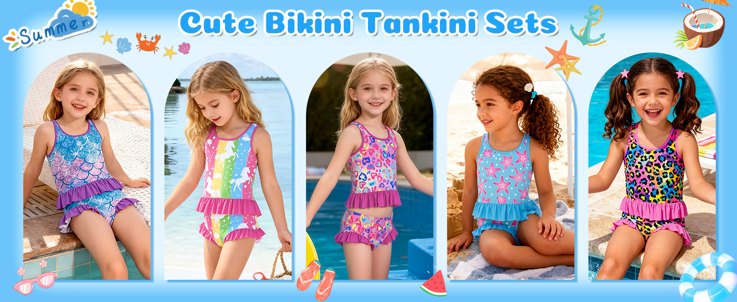 مجموعة تانكيني للفتيات: حورية البحر، قوس قزح، طباعة على شكل قلب، نجم البحر، البطيخ، إلخ، نمط هاواي المفضل للفتيات. تحتاج الفتيات الصغيرات إلى هذا التانكيني المتواضع لحمايتهن في حمام السباحة أو الشاطئ الصيفي