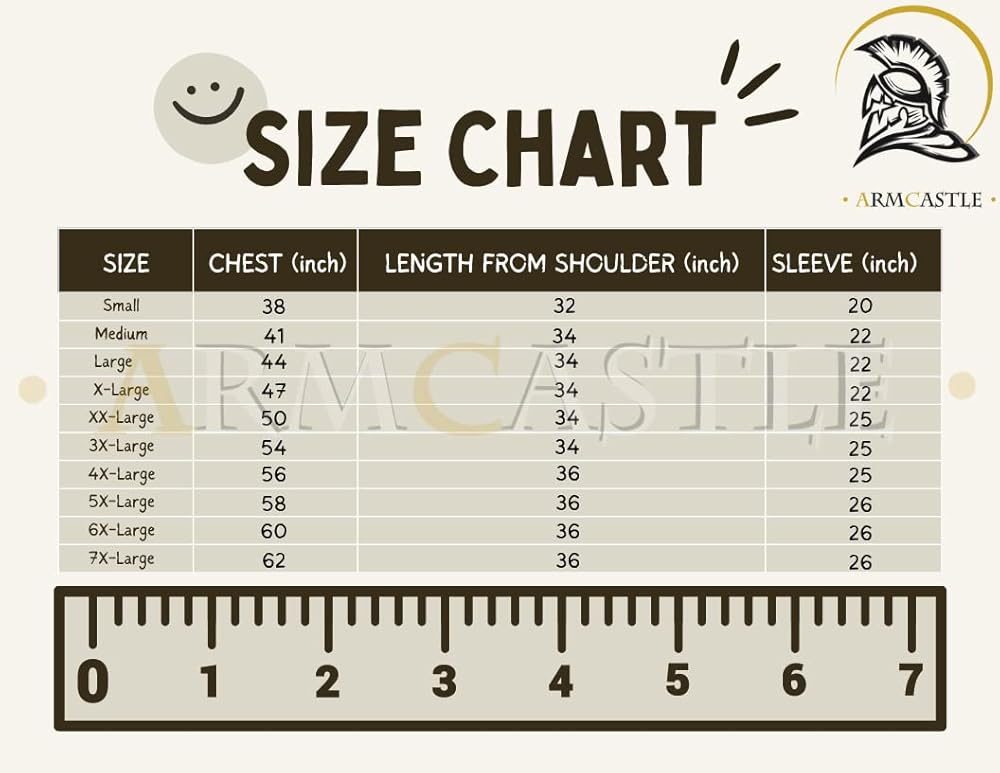 5X-Large Size:- (Chest Diameter: 58", Length From Shoulders: 36", Sleeves: 26")