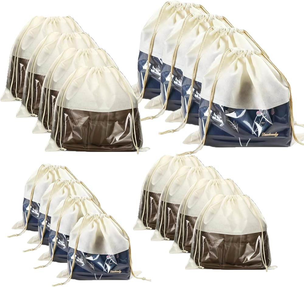 16 قطعة من أكياس الرباط المقاومة للغبار باللون البيج، أكياس تخزين الغبار لحقائب اليد وأغطية القماش غير المنسوج، حقيبة تنظيم التعبئة وحقيبة الأحذية (4 أحجام)