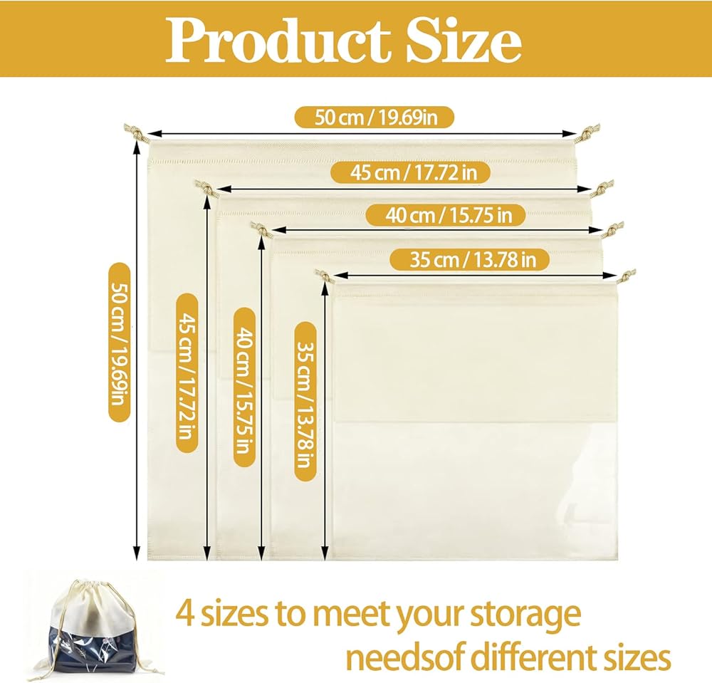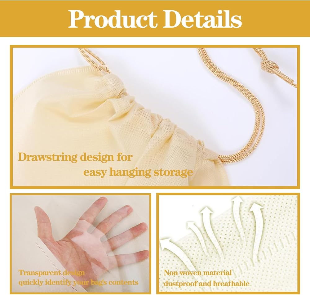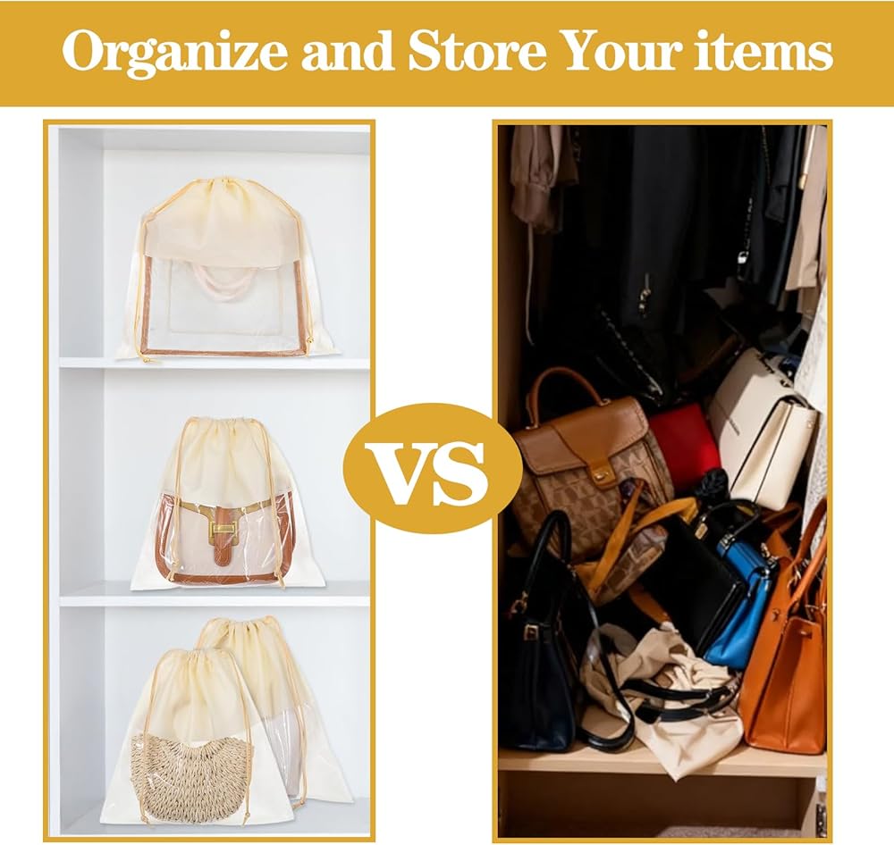 Variety to Hold: our drawstring fabric bags can organize and store a wide variety of items, such as purses, handbags, crossbody bags, backpacks, tootsies, scarves, clothes, blankets, shoes, collectibles, cosmetics, toiletries and more to keep your items in order