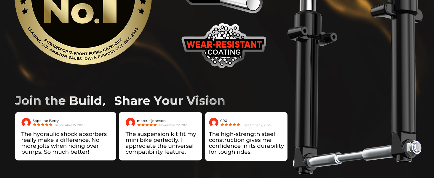 ترقية سهلة لمدة 15 دقيقة: قم بتحويل رحلتك في أقل من 15 دقيقة من خلال التثبيت المباشر الذي نقدمه. اتبع دليل الفيديو الخاص بنا وابدأ الطريق بشكل أسرع باستخدام نظام تعليق احترافي.