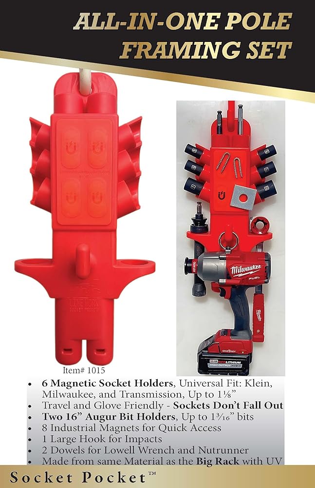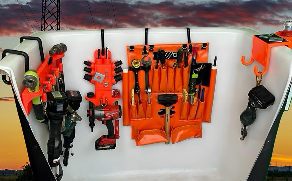 تم تصميم جيب Lineman مقبس منتجات Line Work Bucket ليناسب كلاً من مجموعات مقابس Klein وMilwaukee Lineman وأدوات التأطير الأخرى، مما يجعلها أداة متعددة الاستخدامات لرجال الخطوط.
