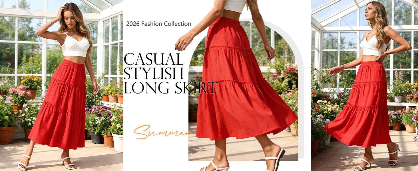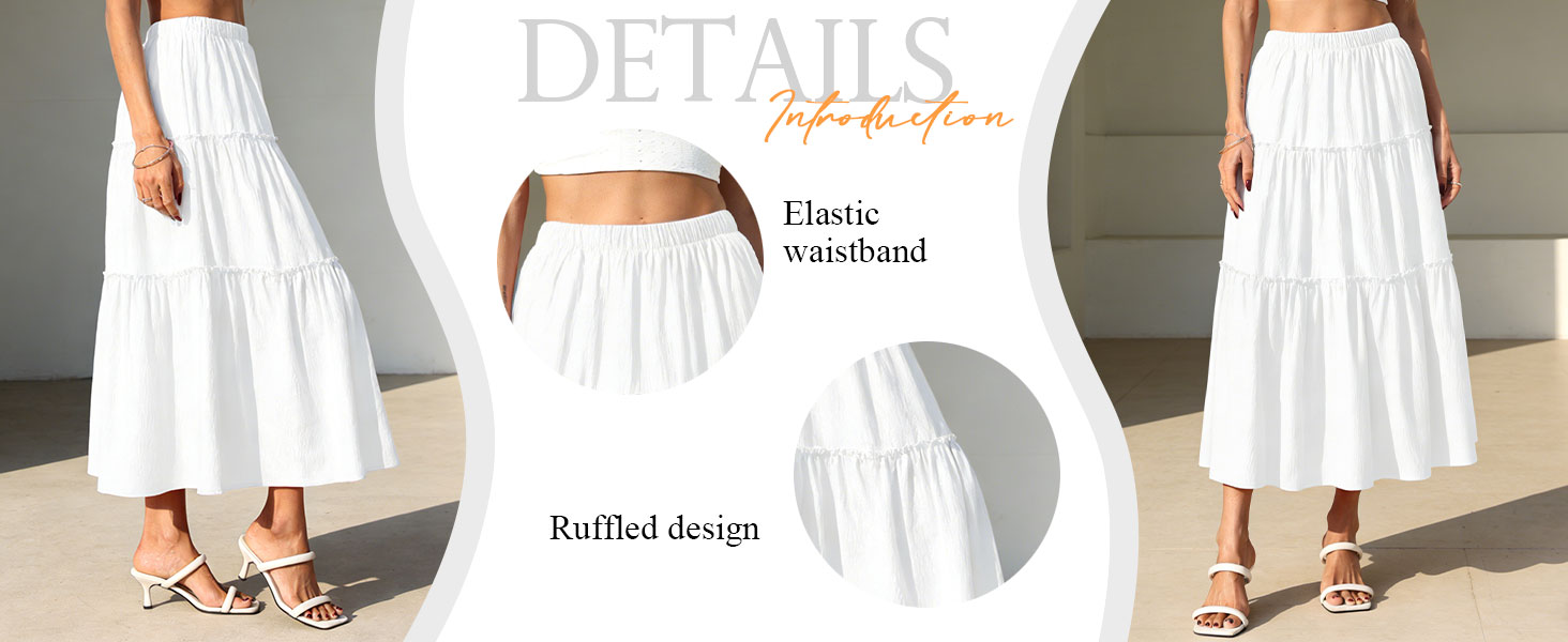 المزايا: خط على شكل حرف A، حزام خصر مطاطي، تصميم مطوي متعدد الطبقات، تنورة مكشكشة، ثنية ممتازة، مناسبة لجميع المواسم