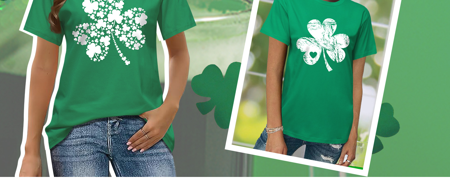 قمصان عيد القديس باتريك للنساء: تي شيرت مطبوع عالي الجودة برقبة دائرية وأكمام قصيرة من Lucky Irish Shamrock in Kuwait