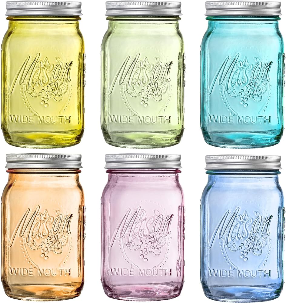 آمنة ومتينة: برطمانات الماسون ذات الفم الواسع مصنوعة من زجاج ممتاز ومتين للغاية وغير سام؛ مادة خالية من مادة BPA تضمن سلامة الطعام بنسبة 100% مع الحفاظ على سلامة النكهة؛ قم بتخزين أي مادة غذائية بأمان دون تسرب المواد الكيميائية الضارة.