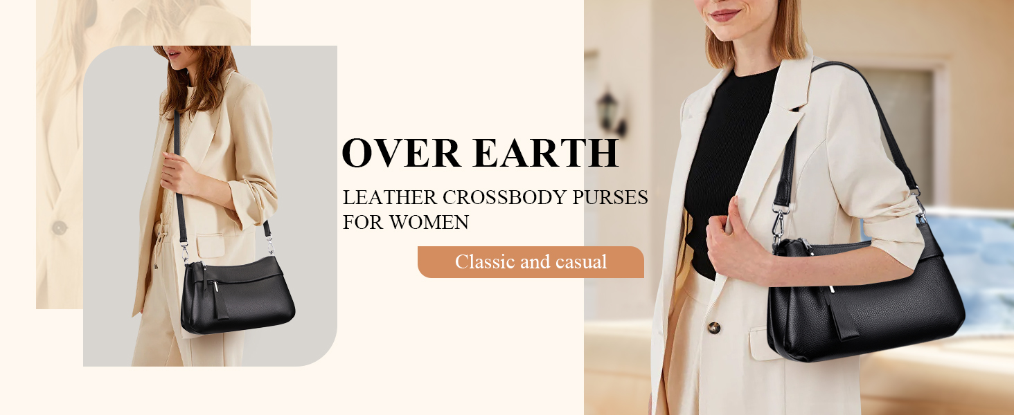 Over Earth Genuine Leather Crossbody Bags for Women Small Crossbody Handbag Shoulder Purses with 2 Detachable Straps