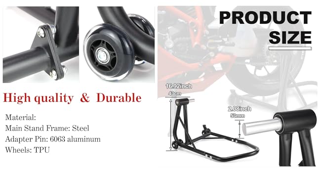 الملاءمة: حامل الدراجة النارية مناسب للدراجات النارية اليسرى مع محمل عجلة خلفية 53.4 مم. وهي مصممة لرفع العجلة الخلفية على الجانب الأيسر فقط (يرجى التأكد من أن محمل العجلة الخلفية الخاص بك هو 53.4 مم قبل الشراء، أو يمكنك أيضًا التواصل معنا.)