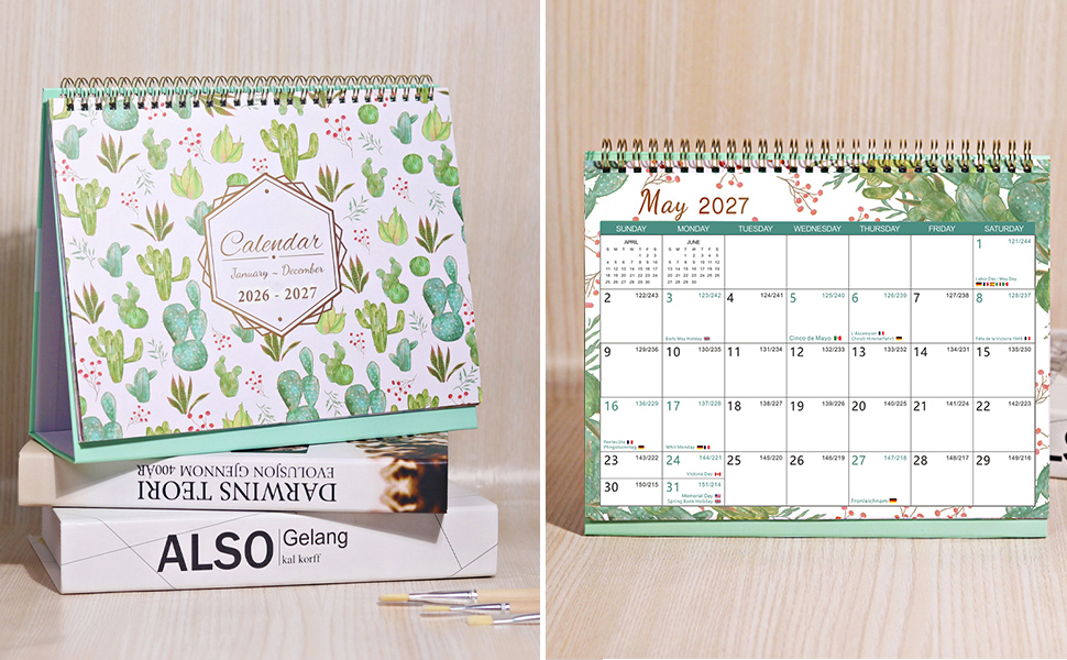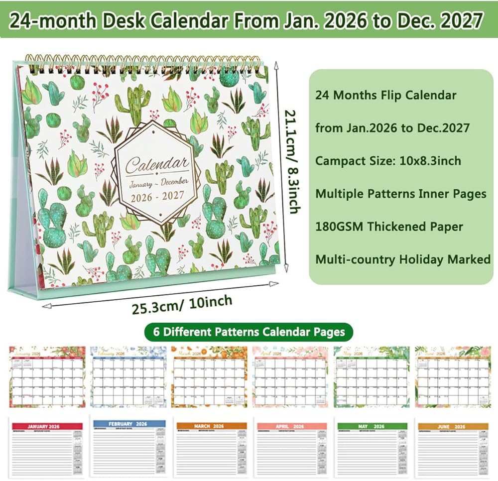 تقويم سطح المكتب 2026-2027 (سنتان) تقويم الوجه 24 شهرًا مكتب مكتب قائم صغير، 10 × 8.3 بوصة تقاويم مكتب واقفة (يناير 2026-ديسمبر 2027) مع مخطط شهري