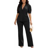 【رقبة على شكل حرف V جذابة ومقاس نحيف】 ارفع ملابس عملك الاحترافية مع خط رقبة على شكل حرف V كلاسيكي وتصميم خصر نحيف. تخلق السراويل الطويلة ذات الخصر العالي المستقيمة صورة ظلية طويلة، مما يساعدك على إظهار الثقة والأناقة في كل اجتماع أو حدث رسمي في هذا البنطلون الأسود.