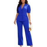【تصميم احترافي للأزرار】 هل سئمت من المعاناة مع القمصان القابلة للسحب التي تفسد شعرك ومكياجك؟ تتميز مجموعة البدلة النسائية المكونة من قطعتين بسترة ذات زر واحد، مما يجعل من السهل ارتداؤها وخلعها مع الحفاظ على المظهر الأنيق والمنظم الذي تفتقر إليه مجموعات السترة الأخرى المكونة من قطعتين.