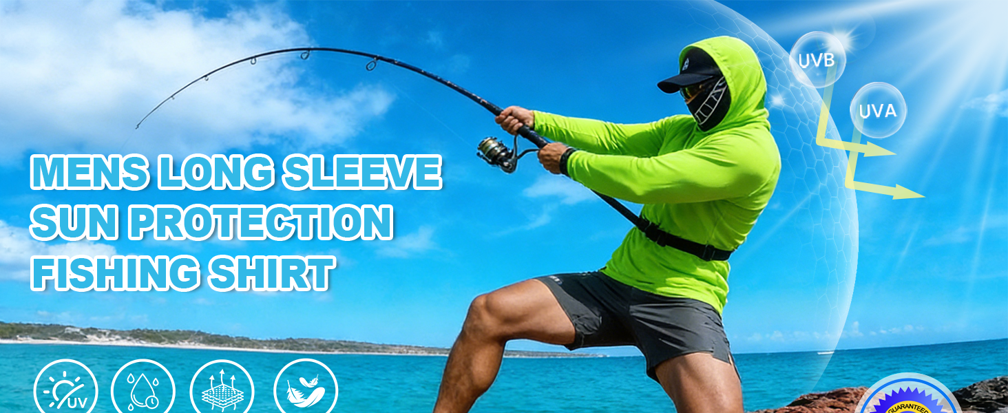 الحماية من الشمس: تصميم طويل الأكمام ونسيج حماية من الأشعة فوق البنفسجية فئة 50+ يحمي بشرتك من الأشعة فوق البنفسجية فئة A وB الضارة، قميص الصيد طويل الأكمام مع غطاء للرأس يساعد على حماية رقبتك من حروق الشمس، بينما توفر الياقة بدون علامة ونسيج البوليستر النقي راحة فائقة صديقة للبشرة ويضيف تصميم أكمام راجلان نطاقًا أكبر من الحركة