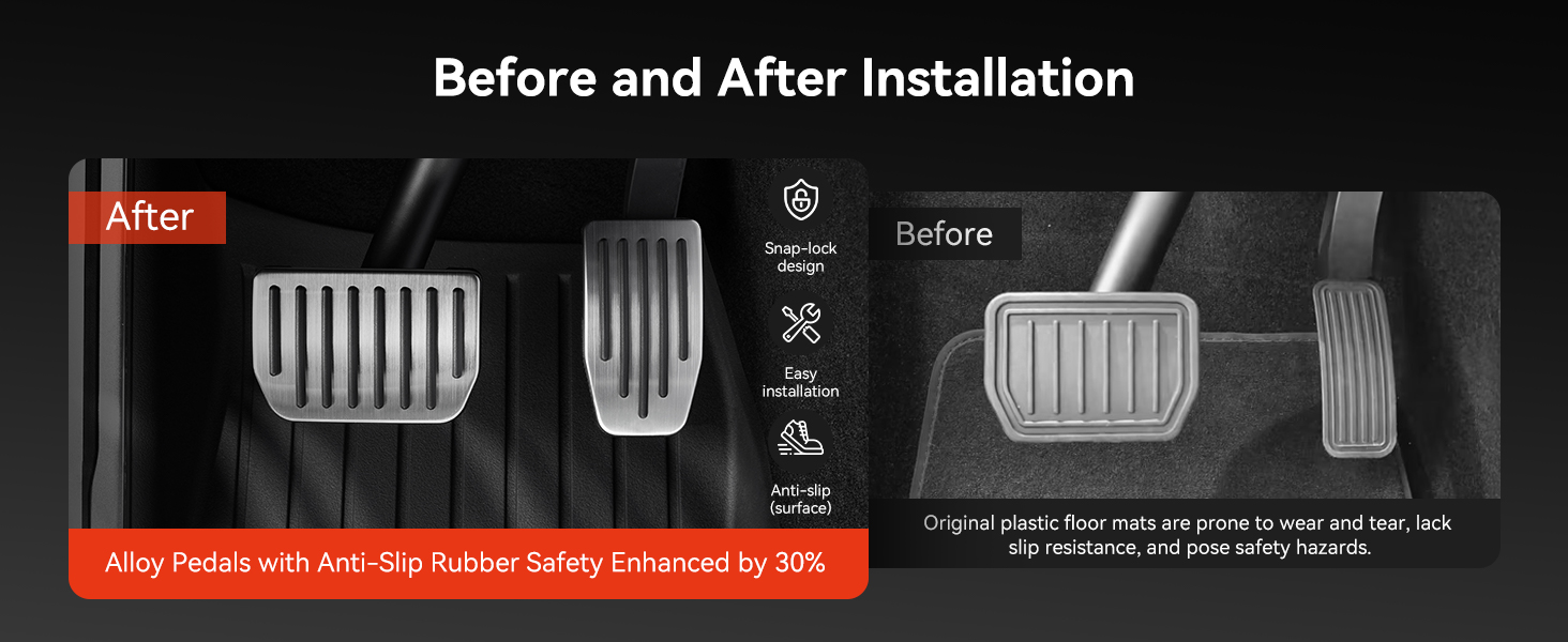 ملاءمة آمنة دون التأثير على استجابة الدواسة بمجرد تركيبها، تبقى أغطية الدواسات ثابتة في مكانها ولا تتداخل مع عملية الكبح أو التسارع العادية.