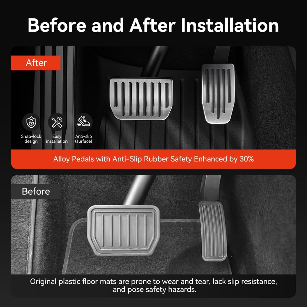 مجموعة استبدال غطاء الدواسة الكاملة تتضمن غطاء دواسة الوقود وغطاء دواسة الفرامل. مصممة لمركبات تسلا ذات المقود الأيسر.
