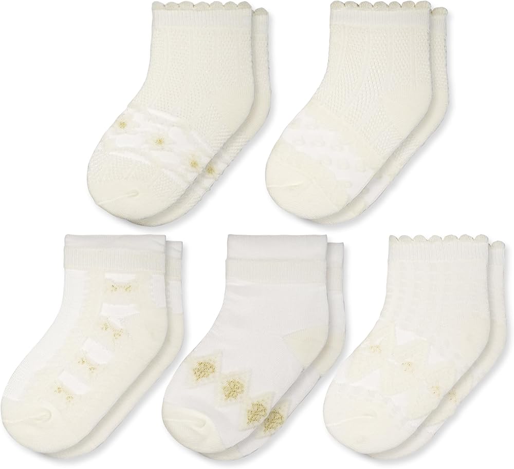 Give your little girl the perfect blend of comfort, style, and durability with HENRY THE GOOSE 5 Pairs Toddler Ruffle Socks designed to suit girls ages 2T to 8 years. Made with a premium cotton-spandex blend, these socks are soft, stretchy, and breathable ideal for both active toddlers and fashion-loving little girls. Each set includes five elegant frilly socks, carefully crafted with unique lace or mesh patterns that pair well with everything from uniform shoes to party sandals. With mesh zones for better airflow, your child's feet stay cool and fresh even after long hours of wear making these an excellent pick for school, daycare, or outings. The seamless toe construction eliminates the irritation of traditional socks, so your little one can run, jump, and play in comfort. Whether you're looking for white ruffle socks girls can wear with dresses or durable toddler girl white socks for everyday use, this set offers both charm and practicality. Easy to care for and long-lasting, these ruffle socks for girls retain their softness and shape even after multiple washes. Available in sizes 2-4T, 4-6, and 6-8, they're perfect for growing kids, making them a smart, stylish addition to any child's wardrobe. Upgrade your daughter's sock drawer with ruffle socks that's as functional as it is adorable because quality and cuteness should always go hand in hand.