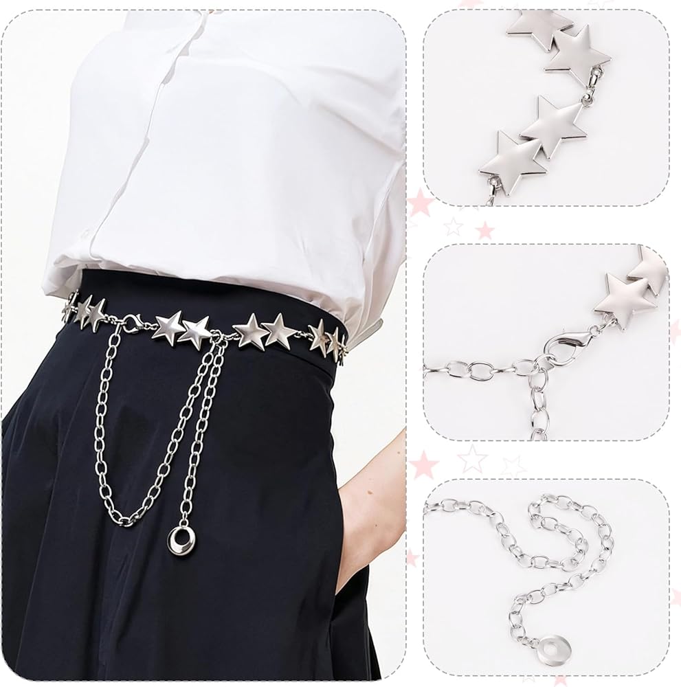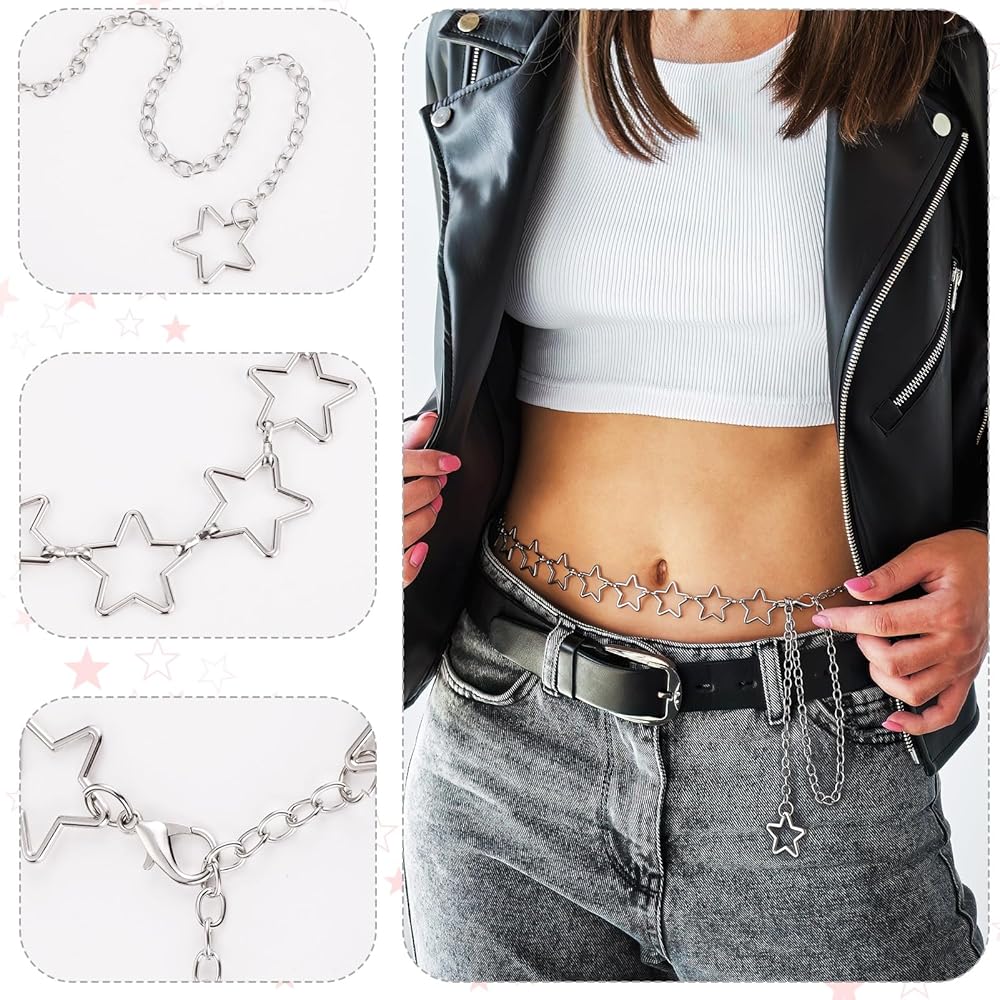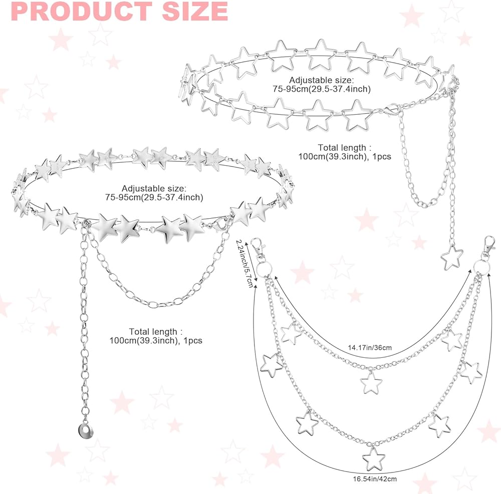 مجموعة متعددة القطع: تتضمن قطعتين من حزام السلسلة مع زخارف على شكل نجمة بلمسة نهائية فضية اللون، وسلاسل بنطال على شكل نجمة، مما يسمح بخيارات تصفيف مختلفة ومظهر متعدد الطبقات