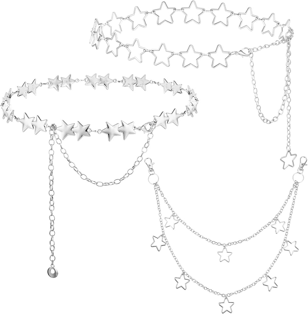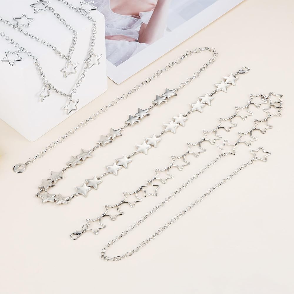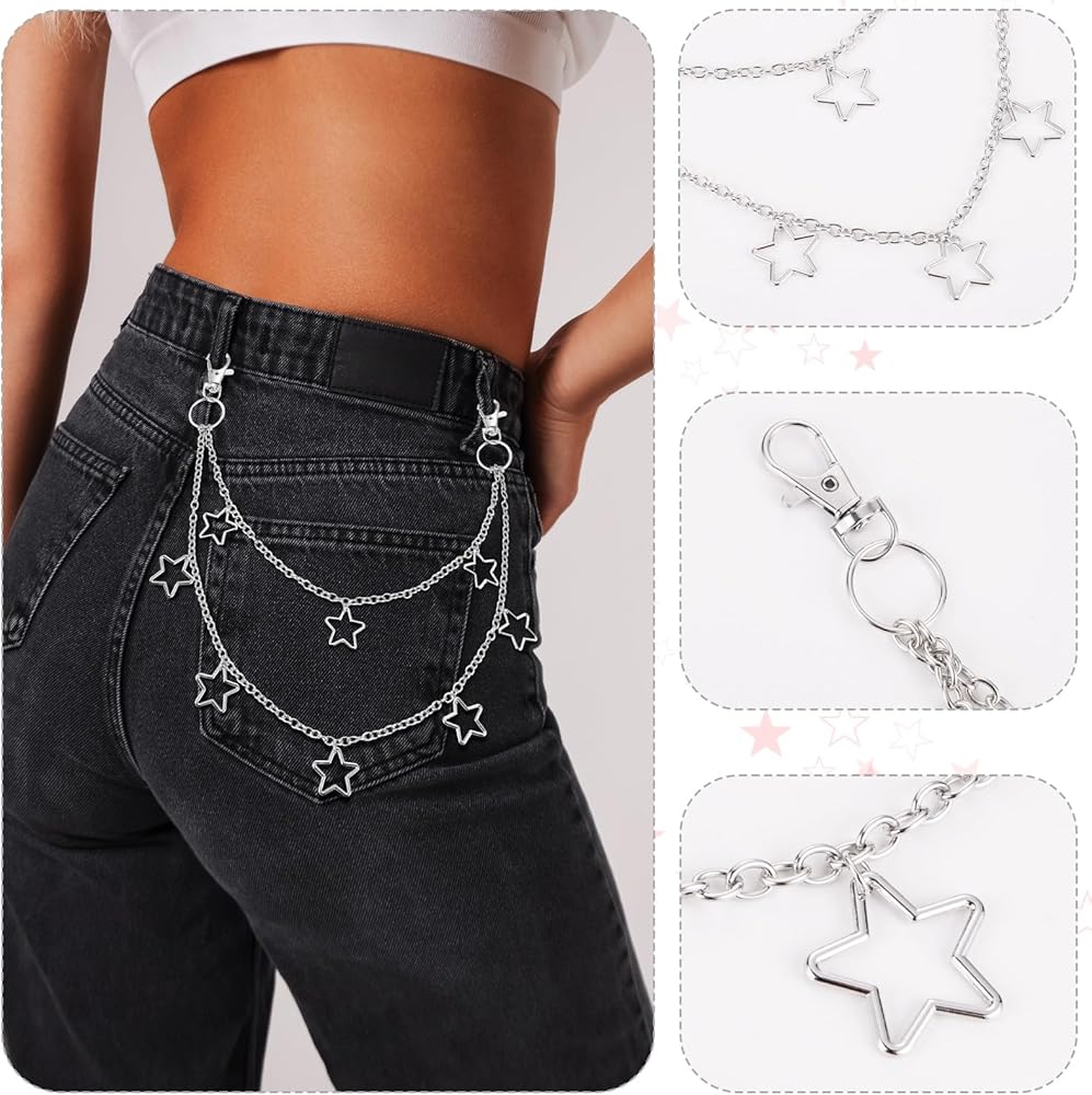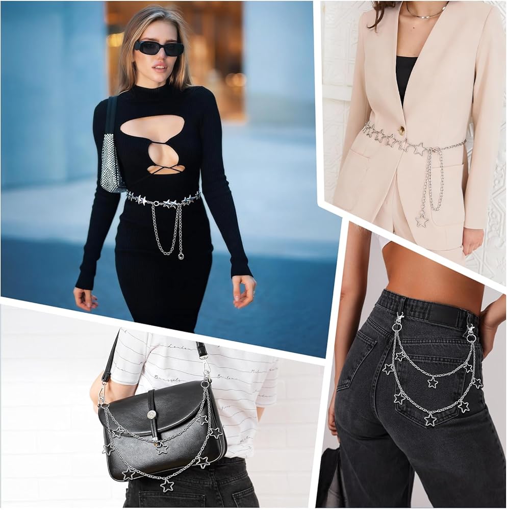مجموعة متعددة القطع: تتضمن قطعتين من حزام السلسلة مع زخارف على شكل نجمة بلمسة نهائية فضية اللون، وسلاسل بنطال على شكل نجمة، مما يسمح بخيارات تصفيف مختلفة ومظهر متعدد الطبقات