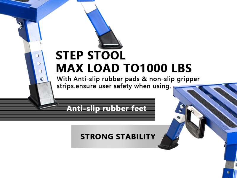 قابلة للتعديل وسهلة التخزين: حجم المنصة لخطوة RV هو 16.5 بوصة × 12.2 بوصة، ويمكن تعديل أرجل الخطوات المصنوعة من الألومنيوم القابلة للطي إلى 4 إعدادات ارتفاع لتناسب الاحتياجات المختلفة. يمكن فتح وإغلاق الخطوة القابلة للطي للبالغين في ثوانٍ