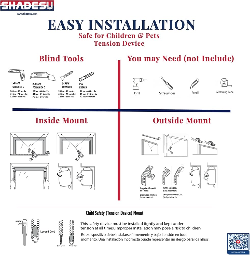 • SELECT THE SIZE INSIDE MOUNT: When you order a 34-inch width, you will receive a shade that measures exactly 33.5 inches wide. Simply select the width of your window. With the manual control system, the height of the shade can be adjusted from 20 inches to 72 inches. A minimum window depth of 2.5 inches is required for proper installation and a clean, built-in look. For more details, please contact us.