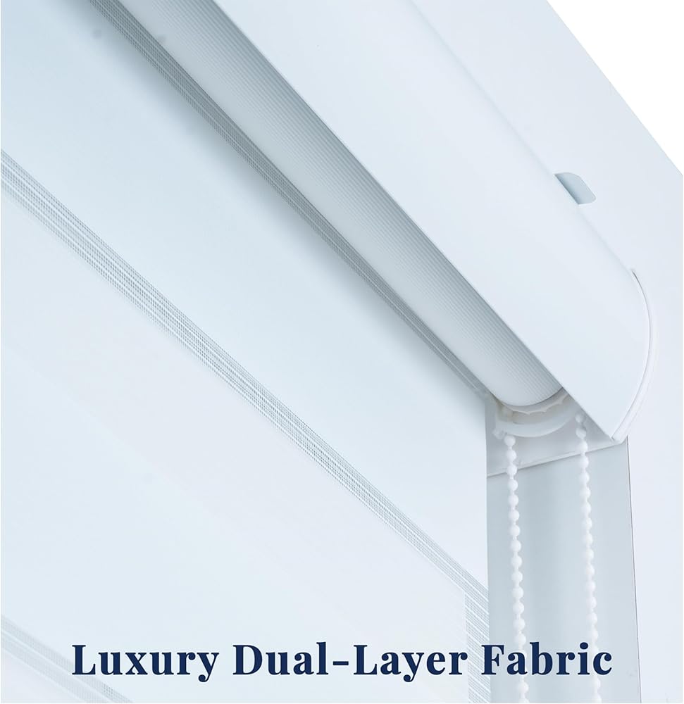 • Made from 100% premium polyester,excellent ventilation, and are anti-static, dust-proof, and durable. Featuring a breathable dual-layer design with alternating sheer and solid fabrics, they provide customizable privacy and light filtration. With superior UV protection and long-lasting durability, blinds are perfect for year-round use. Dual-layer zebra blinds allow you to switch between sheer and light-filtering stripes, providing balanced daylight and approximately 75% light blocking for privacy