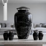مجموعة تذكارية كاملة: مصممة كجرار حرق الجثث للنساء، تعكس هذه المجموعة الأنيقة من الرخام الأسود الكرامة والنعمة، وتوفر جمالًا لا يتأثر بمرور الزمن موجود في الجرار الأنيقة حقًا.