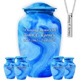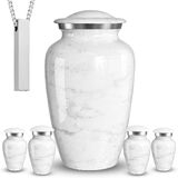 ⚱ إغلاق آمن وواقٍ: مصممة للاستخدام طويل الأمد، تتميز جرار الدفن هذه للرماد البشري للبالغين بغطاء علوي لولبي ملولب وتتضمن جرارًا صغيرة متطابقة للرماد البشري تذكارًا لمشاركة الذكريات.