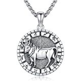 قلادة زودياك من الفضة الإسترليني عيار 925 مكونة من 12 كوكبة هدايا مجوهرات مع سلسلة رولو مقاس 22 بوصة + 2 بوصة in Kuwait