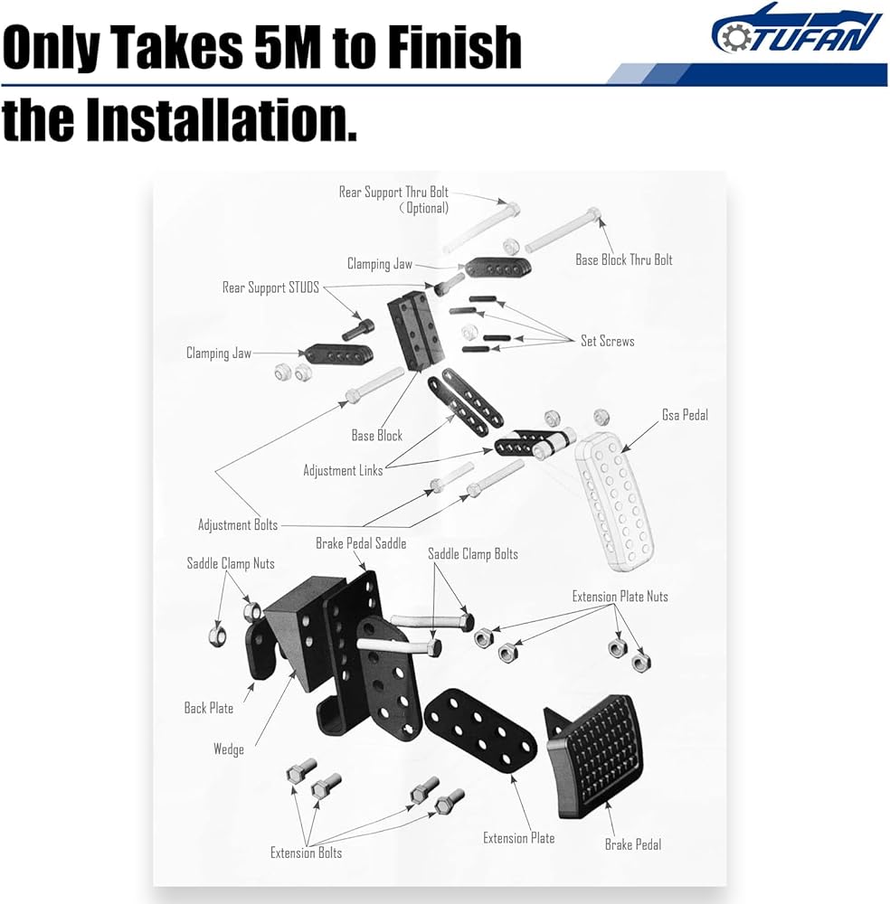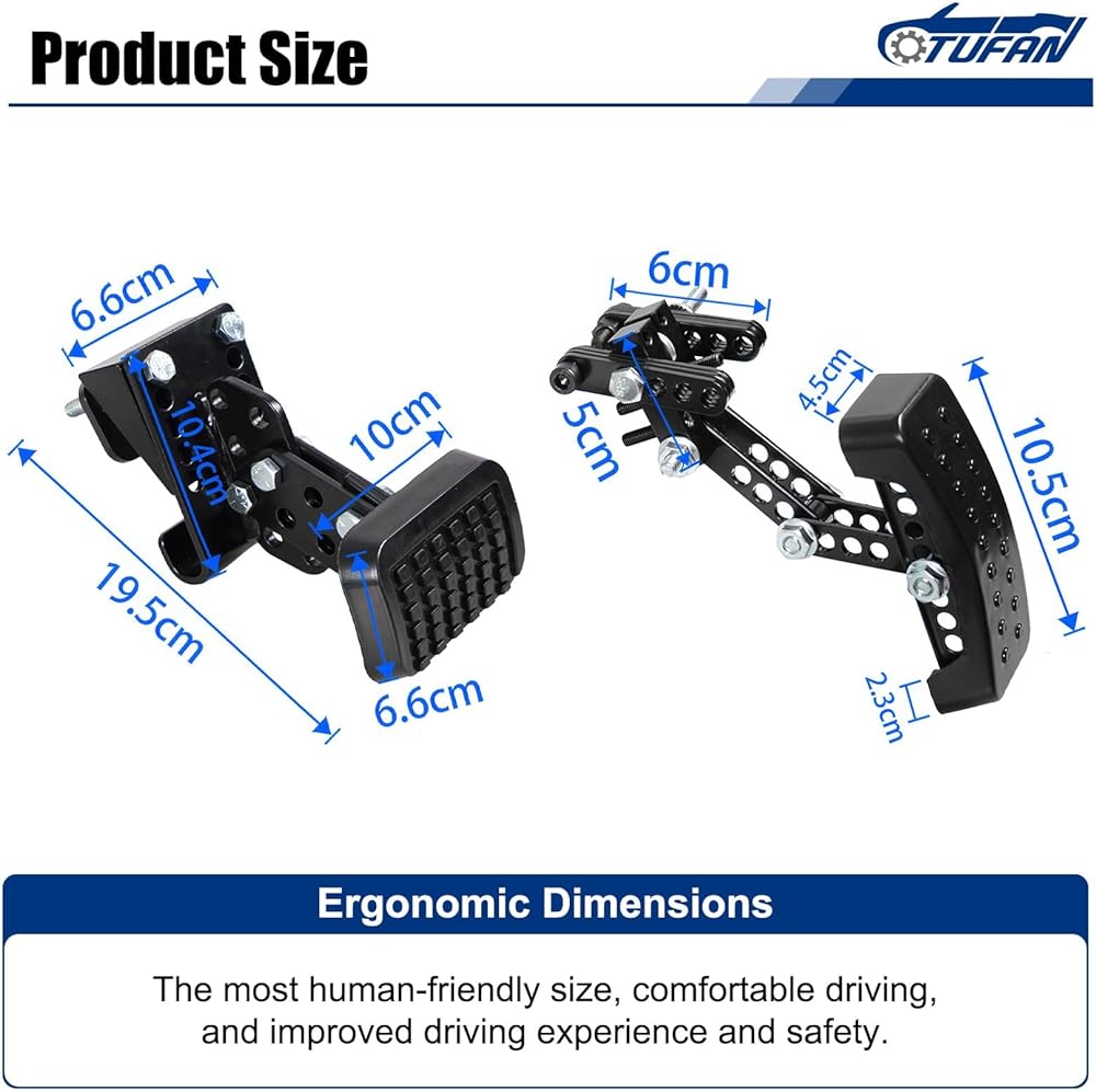 Easy Installation: No drilling or vehicle modification needed! This pedal extender comes with all mounting hardware, allowing quick setup for various users. Ideal for cars and go-karts, it's designed for hassle-free use right out of the box.