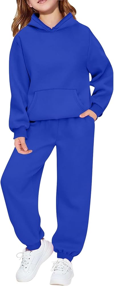 Toddler Boys Girls Sweatsuit Soild 2 Piece Sweatsuits for Teens Kids Sweatshirts and Jogger Sweatpants Sweat Set