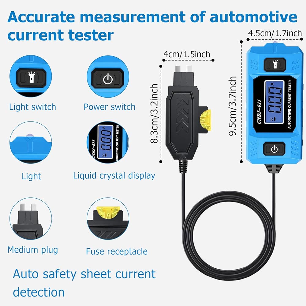 1. Product Specifications Product Name: ZMJY Automotive Fuse & Relay Circuit Tester Brand: ZMJY Compatible Systems: 12V & 24V Automotive Electrical Systems (Cars, Trucks, SUVs, etc.) Display: High-Contrast Blue Backlit LCD Screen Illumination: Integrated Front-facing LED Work Light Power Source: 1 x 23A 12V Battery (Included for testing) Key Functions: Fuse Testing, Relay Testing, Short Circuit Detection, Open Circuit Detection, Current Measurement Construction: Durable ABS/PC Housing with Anti-Slip Rubberized Grip Style / Model: T025 2. Key Product Benefits & Features Stop chasing electrical gremlins with a multimeter and a prayer. The ZMJY Automotive Fuse & Relay Tester is a dedicated, professional-grade diagnostic tool engineered for one purpose: to make automotive electrical troubleshooting fast, accurate, and accessible for everyone. Pinpoint Accuracy for Confident Diagnoses: This isn't just a simple light-up circuit tester. It's a high-precision current tester capable of detecting minute current changes. It allows you to not only check if a blade fuse is good or bad but also to test the coil and switch functionality of automotive relays accurately. Instantly identify short circuits that drain your battery and open circuits that kill your accessories, taking the guesswork out of every repair. Engineered for Real-World Conditions: We built it for the challenges of a garage or roadside. The bright front LED light illuminates dark fuse boxes and engine compartments, while the easy-to-read blue backlit LCD ensures clear data visibility in bright sunlight or at night. The non-slip, rubber-coated body provides a secure, comfortable grip, even with oily hands, reducing fatigue during lengthy diagnostic sessions. Unmatched Simplicity & Reliability: Designed with the user in mind. There's no complicated learning curve—plug the probes and read the result. Its operation is intuitive, enabling even circuit testing novices to perform professional-grade diagnostics immediately. Powered by a long-life 23A battery, it's ready for multiple tests on a single battery, ensuring reliability when you need it most. 3. Usage Scenarios & The Value It Brings For the DIY Enthusiast Tackling Home Repairs: Is your car's power window, radio, or interior light not working? Instead of paying a mechanic for hours of diagnostic labor, use the ZMJY tester. Quickly check every fuse in the panel to find the single blown one causing the issue. Test the relay for your fuel pump or cooling fan before condemning the more expensive component. It pays for itself on the first use by saving you time, money, and frustration. For the Professional Mechanic or Fleet Technician: Time is money. This tool streamlines your diagnostic workflow. When a commercial truck comes in with an electrical fault, use this fuse and relay checker to rapidly isolate the problem circuit. The clear current readings help differentiate between a failing component and a wiring fault faster than a standard test light. Its durable construction stands up to daily professional use, making it a reliable partner in the shop. For Emergency Roadside Troubleshooting: Stranded with a dead battery or a non-starting vehicle? This compact tool can be a lifesaver. Test main fuses and critical relays (like the starter relay) to quickly determine if the issue is a simple, fixable electrical fault or something more serious. Knowing the exact problem can help you make an informed decision about a quick fix or calling for a tow. The Essential Tool for Vehicle Maintenance & Upgrades: Planning to install new off-road lights, a stereo system, or a trailer harness? Use the tester to safely identify suitable circuit sources with the correct current capacity and verify your connections are solid and free of short circuits before finalizing the installation. It's the smart way to ensure your aftermarket upgrades are reliable and safe. Invest in Confidence. The ZMJY Fuse & Relay Tester transforms complex electrical diagnostics into a straightforward, reliable process. Whether you're a weekend warrior or a seasoned pro, it delivers the precision, durability, and ease-of-use you need to tackle any vehicle electrical system challenge.
