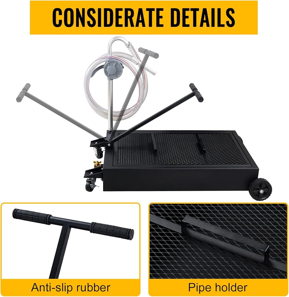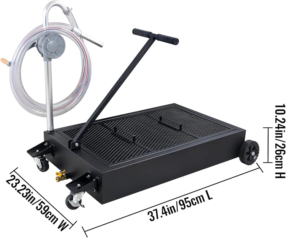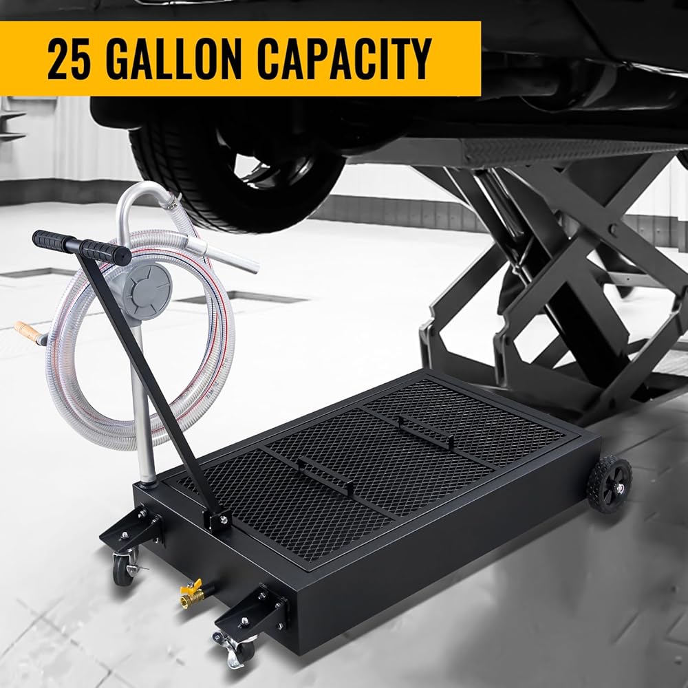 🚗 سعة 25 جالونًا: وعاء تصريف الزيت يحمل ما يصل إلى 20 جالونًا من الزيت. علاوة على ذلك، فإن هذا التصميم البسيط يلغي الحاجة إلى تفريغ السوائل من مركبة الرفع. مثالية لجمع الزيوت والسوائل المستعملة ونقلها إلى منطقة التخلص منها، مما يساعد في الحفاظ على نظافة متجرك.