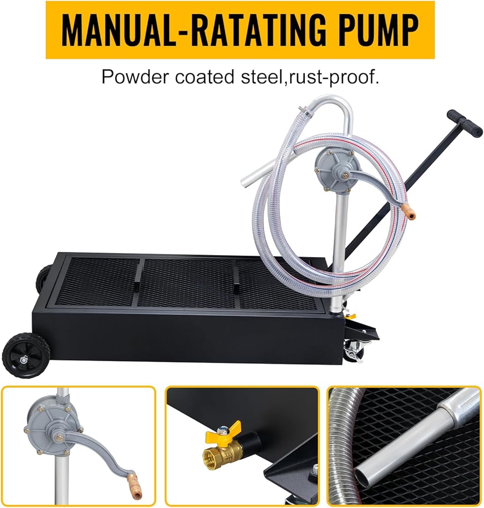🚗تصريف سهل: تتميز وعاء التصريف الخاص بنا بمضخة دوارة يدوية مثبتة أسفل الجزء الأمامي من الخزان لتصريف الزيت والمبرد والسوائل الأخرى بسرعة. بينما يضيف الخرطوم المتضمن مزيدًا من السهولة إلى العملية.