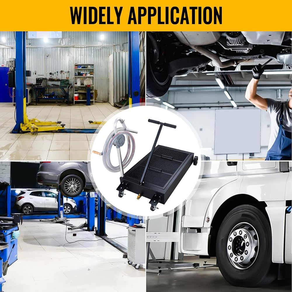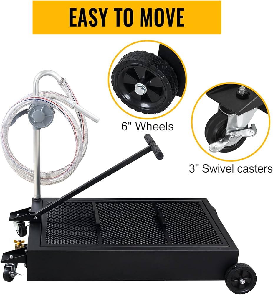 🚗تصميم مريح: شبكة شبكية تغطي الخزان بأكمله لمنع سقوط الحطام والمكونات الأخرى في الزيت. المقبض المريح القابل للطي على شكل حرف T سهل الاستخدام ومثالي لتطبيقات وعاء تصريف الزيت المنخفض، بينما توفر العجلتان مقاس 6 بوصات والعجلتان الدوارتان مقاس 3 بوصات سهولة المناورة.