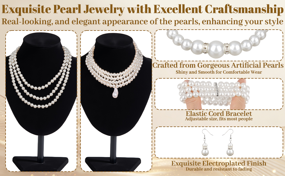 【مادة آمنة ممتازة: أناقة خالية من النيكل وتدوم طويلاً】 مصنوعة من اللؤلؤ الصناعي عالي اللمعان، وسبائك خالية من الرصاص/النيكل، والزركونيا المكعبة المتلألئة، مجموعة مجوهرات اللؤلؤ هذه للنساء لا تسبب الحساسية للبشرة الحساسة. لمسة نهائية مطلية بالكهرباء تقاوم البهتان أو البهتان أو الكسر؛ أسطح اللؤلؤ الناعمة تشعر بخفة الوزن (بدون تعب في الأذن) ومريحة للارتداء طوال اليوم. تضمن الحرفية الرائعة احتفاظ كل قطعة من مجوهرات اللؤلؤ بلمعانها حتى بعد الاستخدام المتكرر.