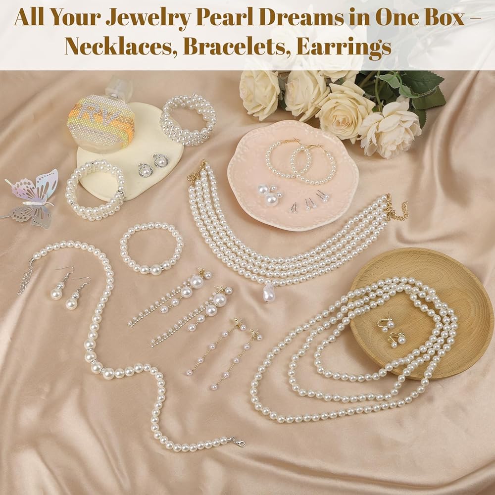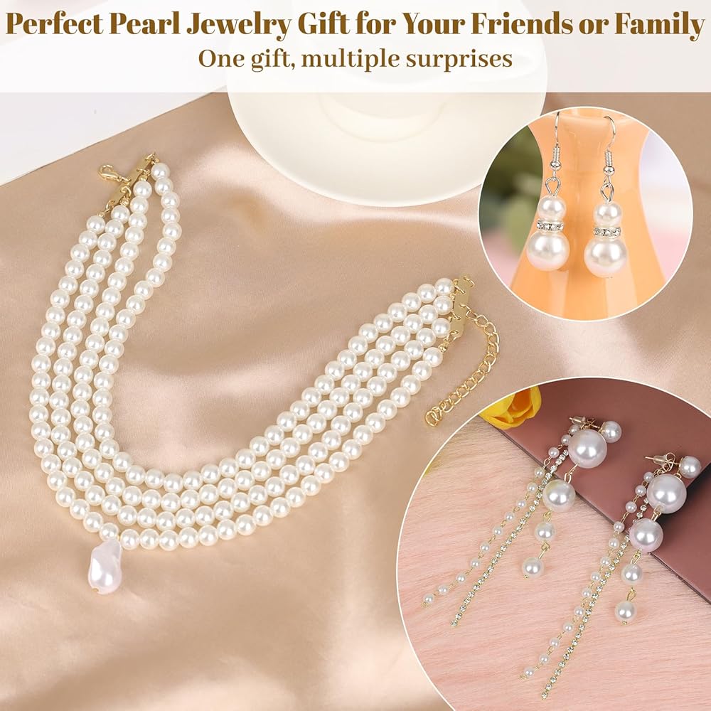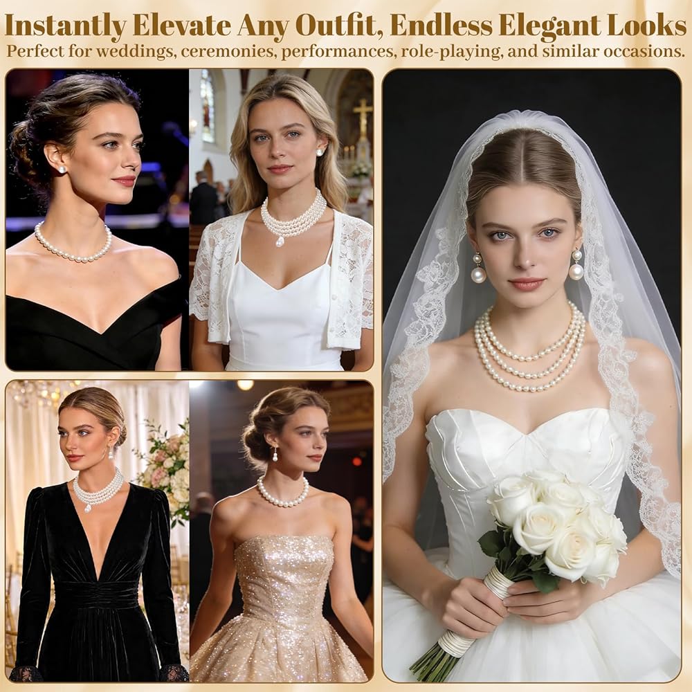 【مثالي لكل مناسبة وهدية】 مثالي لحفلات الزفاف (العروس/وصيفة العروس)، والذكرى السنوية، وأعياد الميلاد، وعيد الأم، والكريسماس، وعيد الحب، أو حفلات الزفاف - مجموعة المجوهرات اللؤلؤية هذه للنساء هي إكسسوار متعدد الاستخدامات للاحتفالات والحياة اليومية. كما أنها تمثل هدية مدروسة وأنيقة للأمهات والزوجات والأخوات والصديقات والأصدقاء. من المؤكد أن أي محب للؤلؤ سيحظى بتقديره.