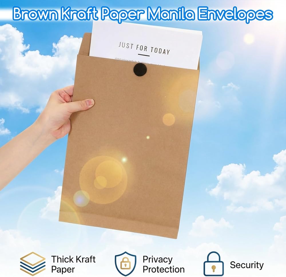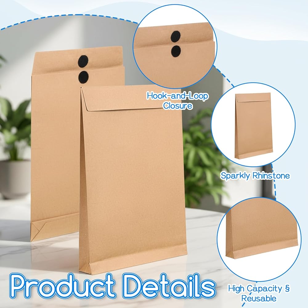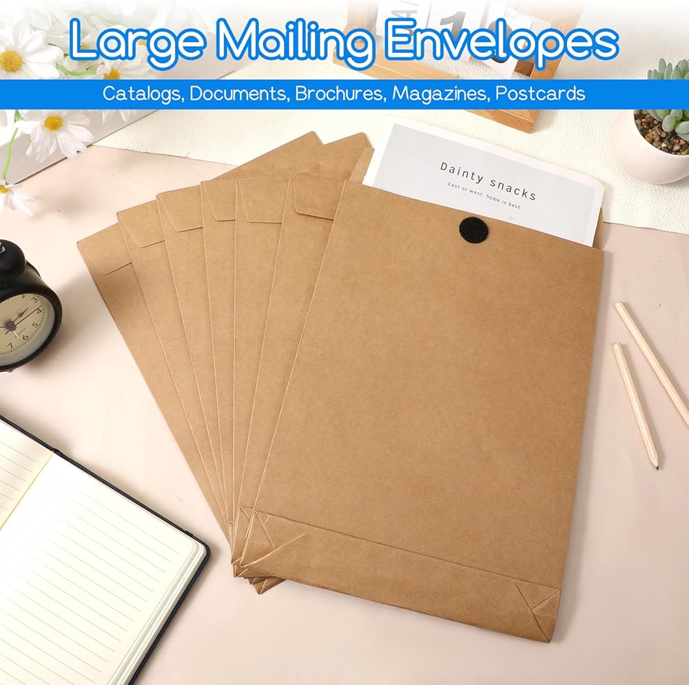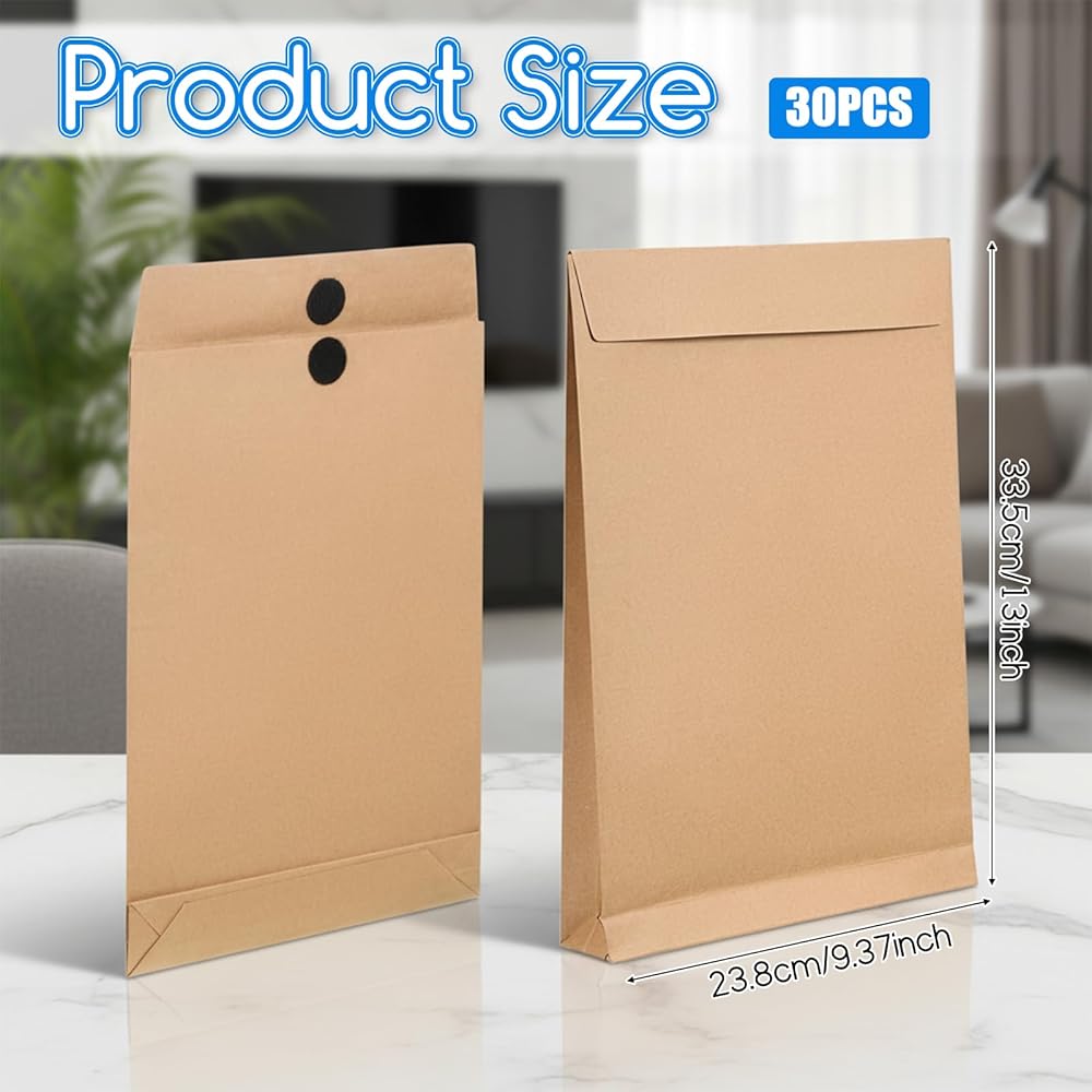 9x13 Envelops: You will receive 30pack 9x13 inches large brown mailing envelopes. Designed with hook-and-loop closure, perfect for mailing catalogs, important papers, business documents, brochures, booklets or storing receipts, magazines, photos and more.