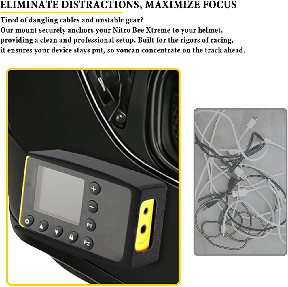 Transform your racing experience with the Nitro Bee Xtreme Helmet Mount! Say goodbye to tangled cables and distractions, and keep your Nitro Bee Xtreme securely in place with our ultra-reliable mount. Designed with convenience in mind,with the innovative 3M Dual Lock fasteners ensure a rock-solid hold, while the locking tabs keep your device steady through every twist and turn. Focus on what matters—winning—while we handle the rest. Elevate your game and race with confidence, knowing your Nitro Bee Xtreme is perfectly positioned and ready for action!