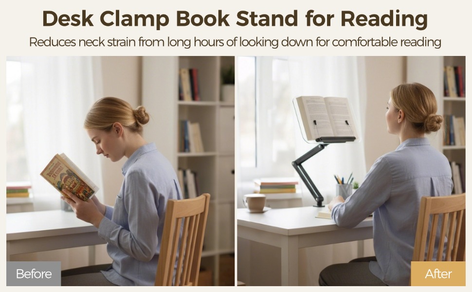 【دعم مريح للقراءة】مصمم لرفع الكتب إلى مستوى مريح للعين من أجل الوضع الطبيعي؛ يساعد على تقليل إجهاد الرقبة والكتف أثناء جلسات القراءة الطويلة؛ يعمل كحامل كتب مريح للقراءة أو الدراسة أو الطبخ أو الاستخدام المرجعي