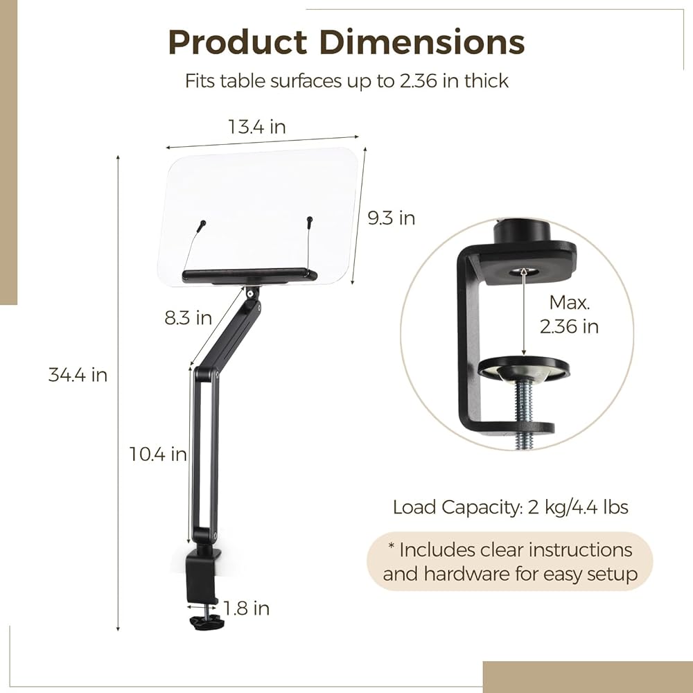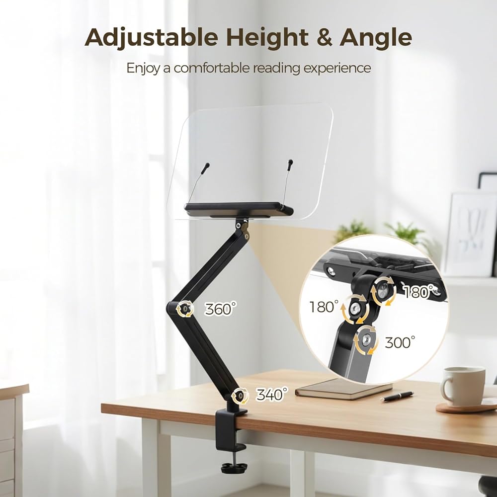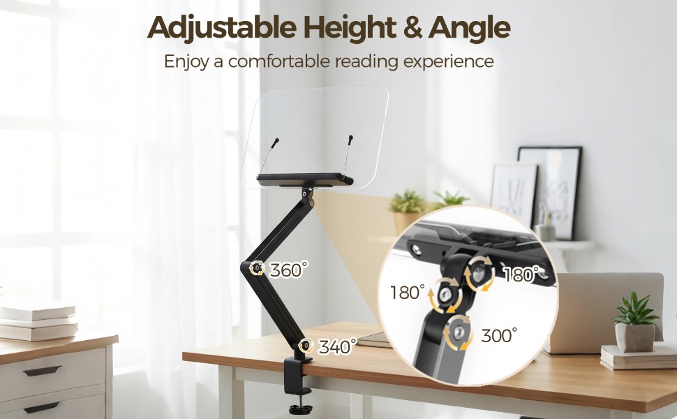 【تصميم ذراع قابل للتعديل بالكامل】يتميز بهيكل متعدد المفاصل قابل للتعديل مما يسمح بالتحكم المرن في الارتفاع والزاوية؛ يعمل كحامل كتب قابل للتعديل يتكيف بسهولة مع أوضاع الجلوس المختلفة وارتفاعات المكتب وتفضيلات القراءة