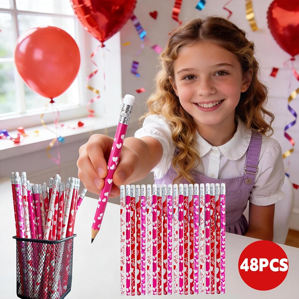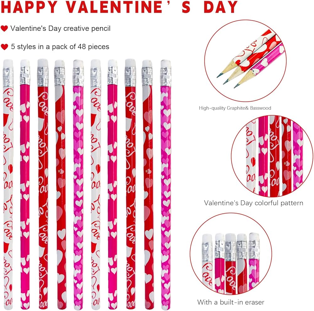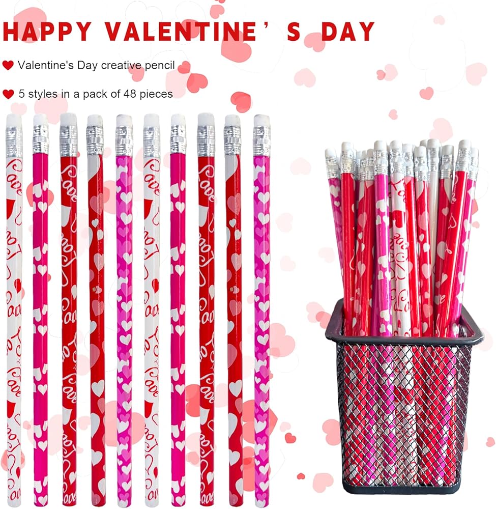 - What will you get:48Pcs Valentine's Day pencils bulk with 12 different cute designs,4pcs for each styles.