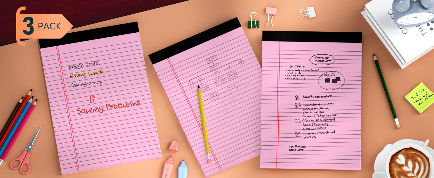 【مجموعة واسعة من التطبيقات】يمكن استخدام دفاتر الملاحظات هذه بمقاس 8.5 × 11 في مجموعة متنوعة من الإعدادات بما في ذلك المنزل والمكتب وتكون 30 ورقة لكل وسادة. تُعد وسادات الملاحظات المبطنة باللون الوردي مقاس 8.5 × 11 للكتابة اليومية مناسبة للطلاب والمعلمين والنادل والمنزل والمدرسة أو المكتب والأعمال التجارية والمزيد. يمكنك استخدام دفتر الملاحظات الوردي ذو المسطرة العريضة مقاس 8.5 × 11 لإنشاء تذكيرات وتسجيل الفواتير المهمة والمكالمات الهاتفية وأشياء أخرى.
