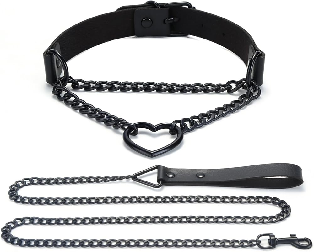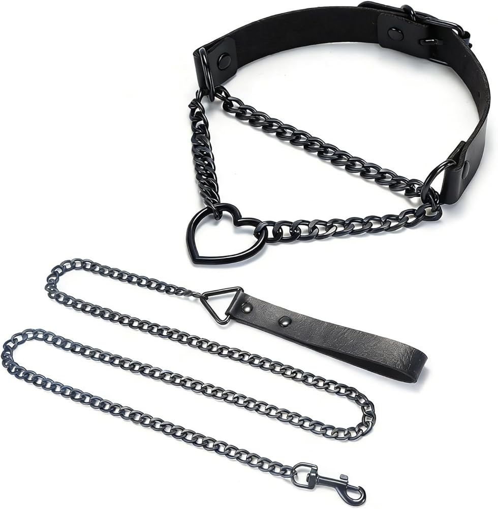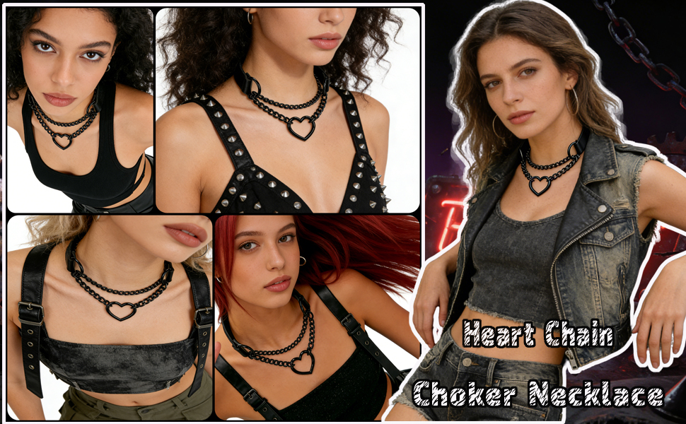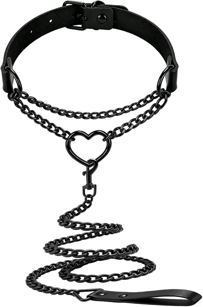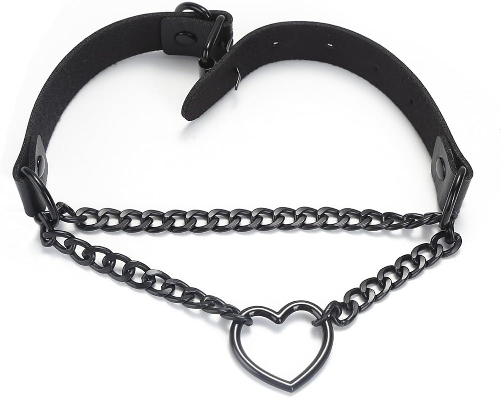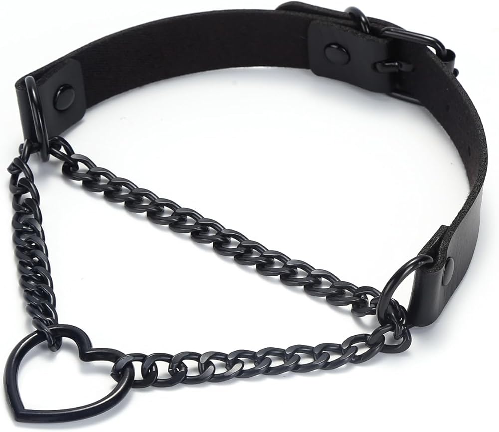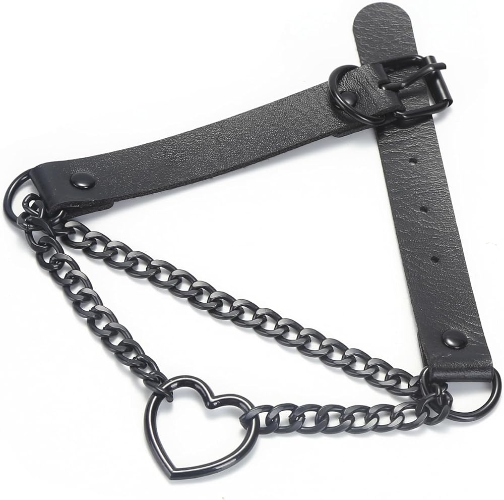 【إكسسوارات Goth Emo】 قلادات سلسلة على شكل قلب / طوق جلدي للمرأة / قلادة سلسلة على شكل قلب / طوق تنكري للهالوين / قلادات طوق نسائية / طوق قلادة أسود / طوق سلسلة ومقود / إكسسوارات قوطية / مجوهرات الهذيان / حزام سلسلة الجسم الشرير