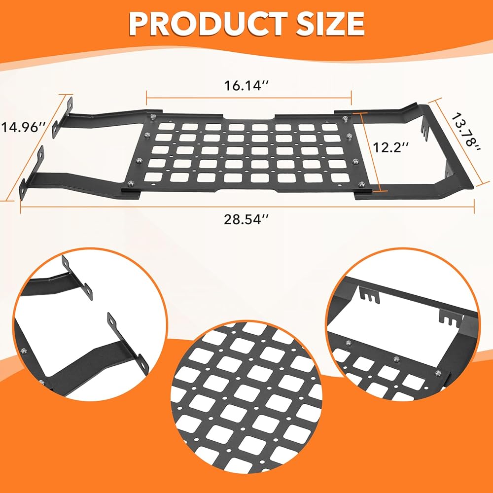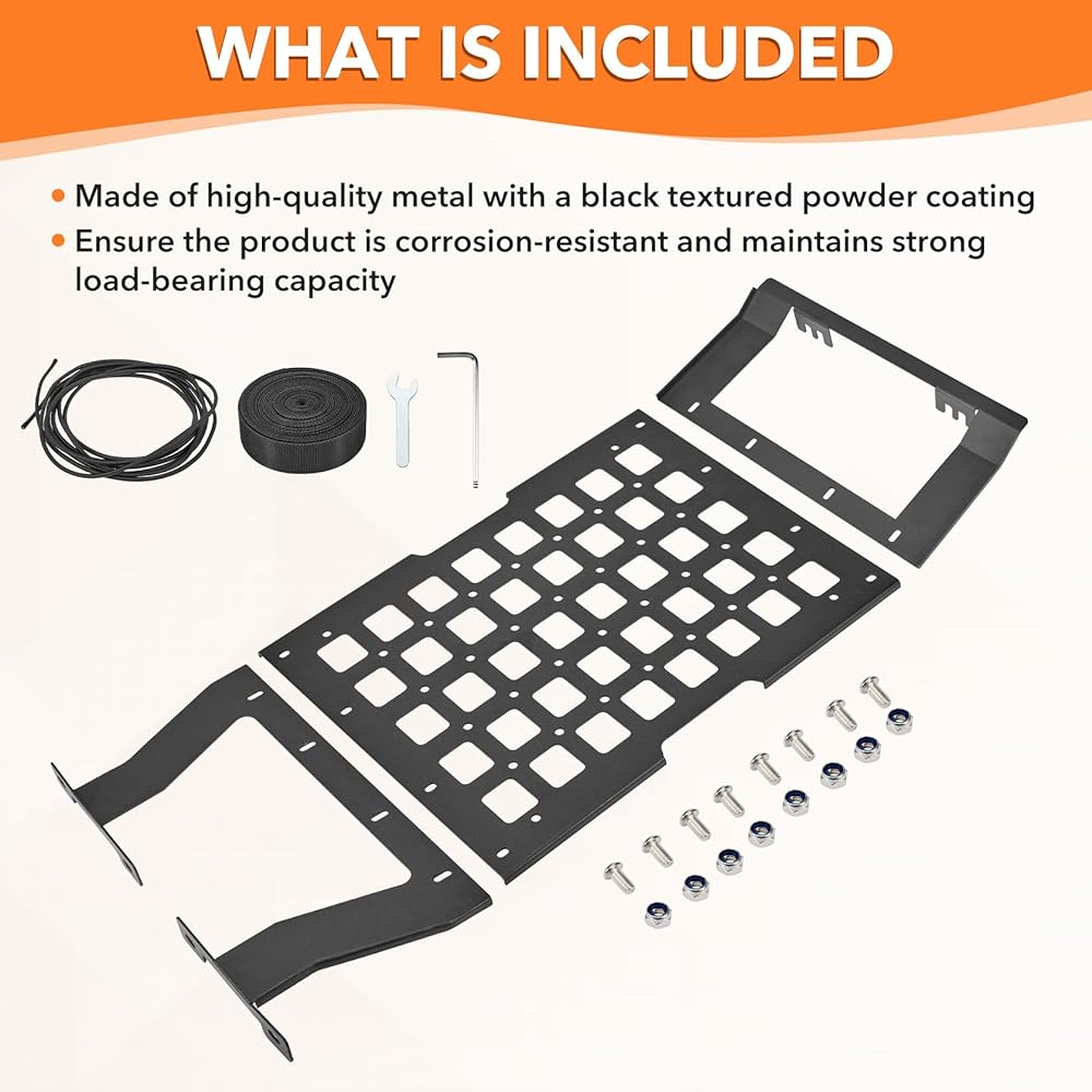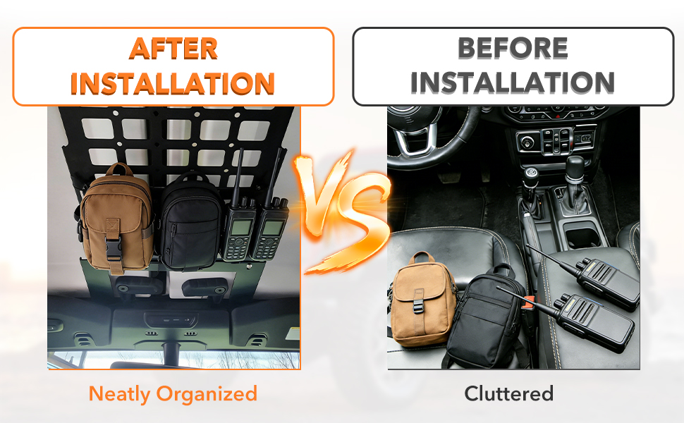 مساحة تخزين موسعة: تضيف لوحة MOLLE مساحة تخزين كبيرة، مما يسمح لك بتركيب أجهزة راديو CB والمصابيح الكاشفة وأدوات الاسترداد والحقائب للحفاظ على تنظيم المعدات وسهولة الوصول إليها