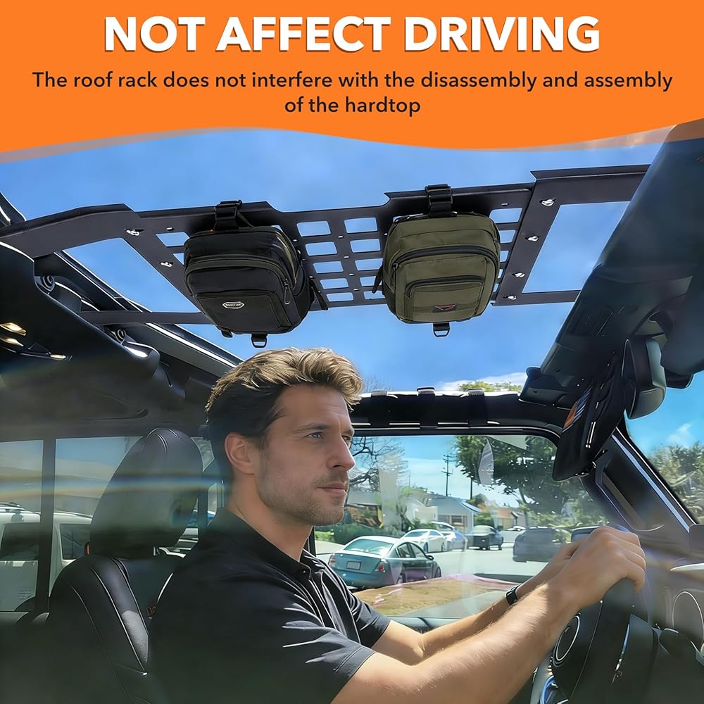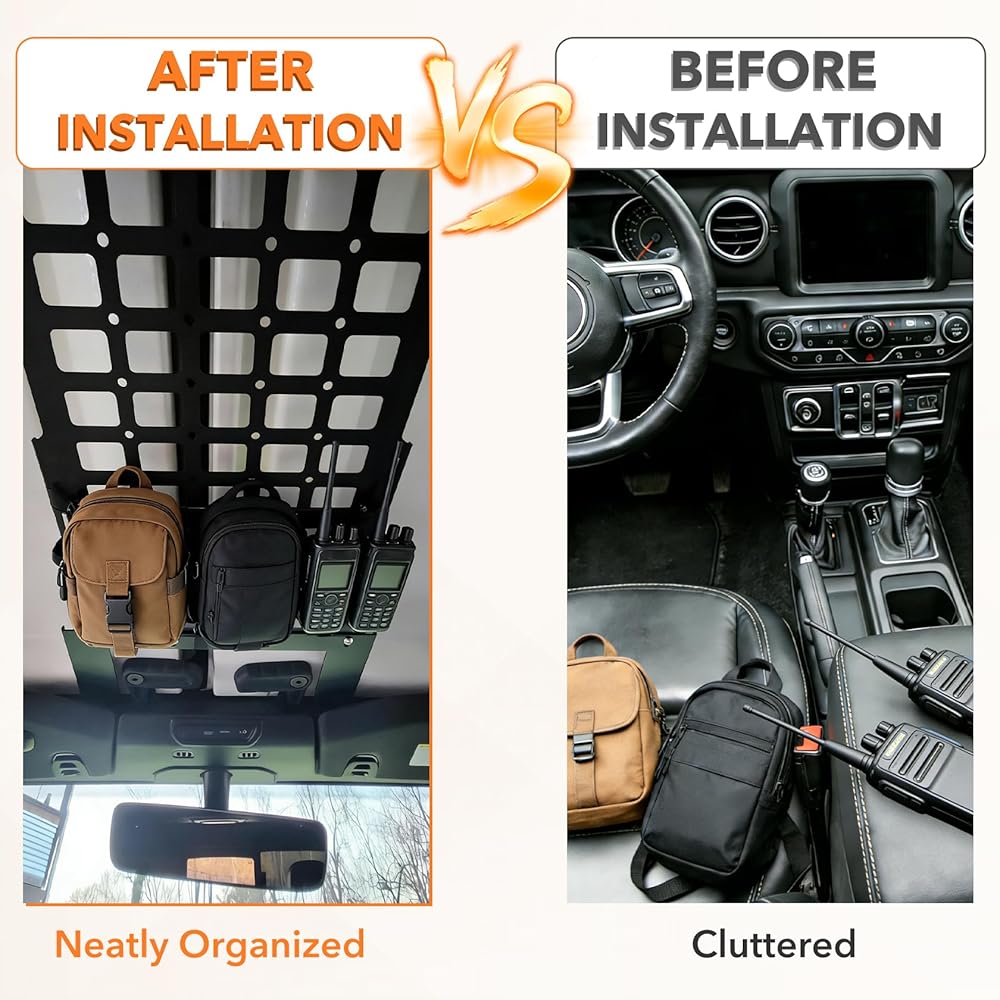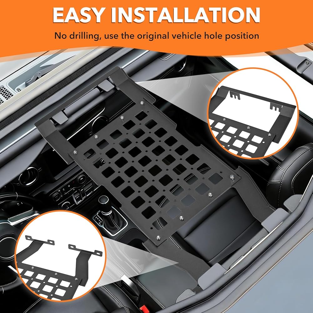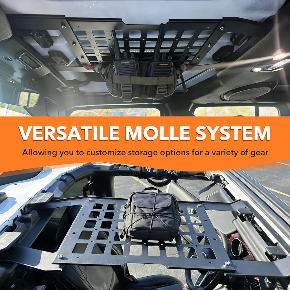 ملاءمة خاصة بالمركبة: مصممة حصريًا لسيارة Jeep Wrangler JL & JLU (2018-2026) وGladiator JT (2020-2026) مع أسطح صلبة. يتم تركيب لوحة MOLLE لرف السقف هذه دون التدخل في إزالة الجزء العلوي الصلب أو إعادة تثبيته
