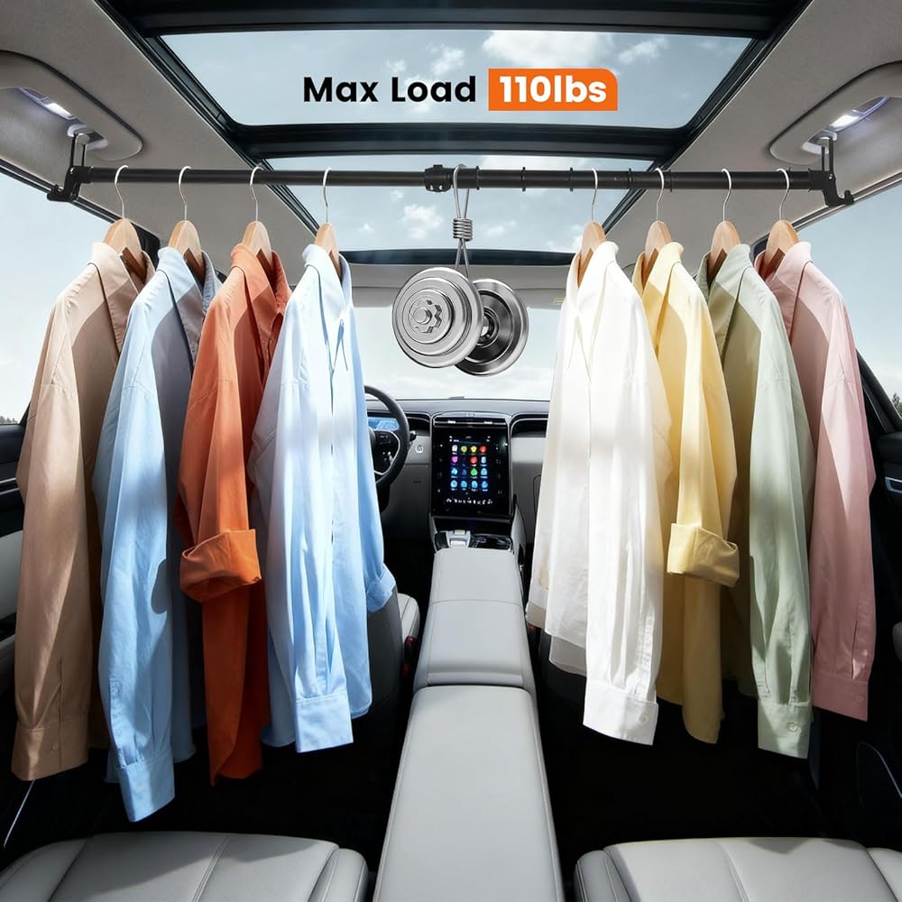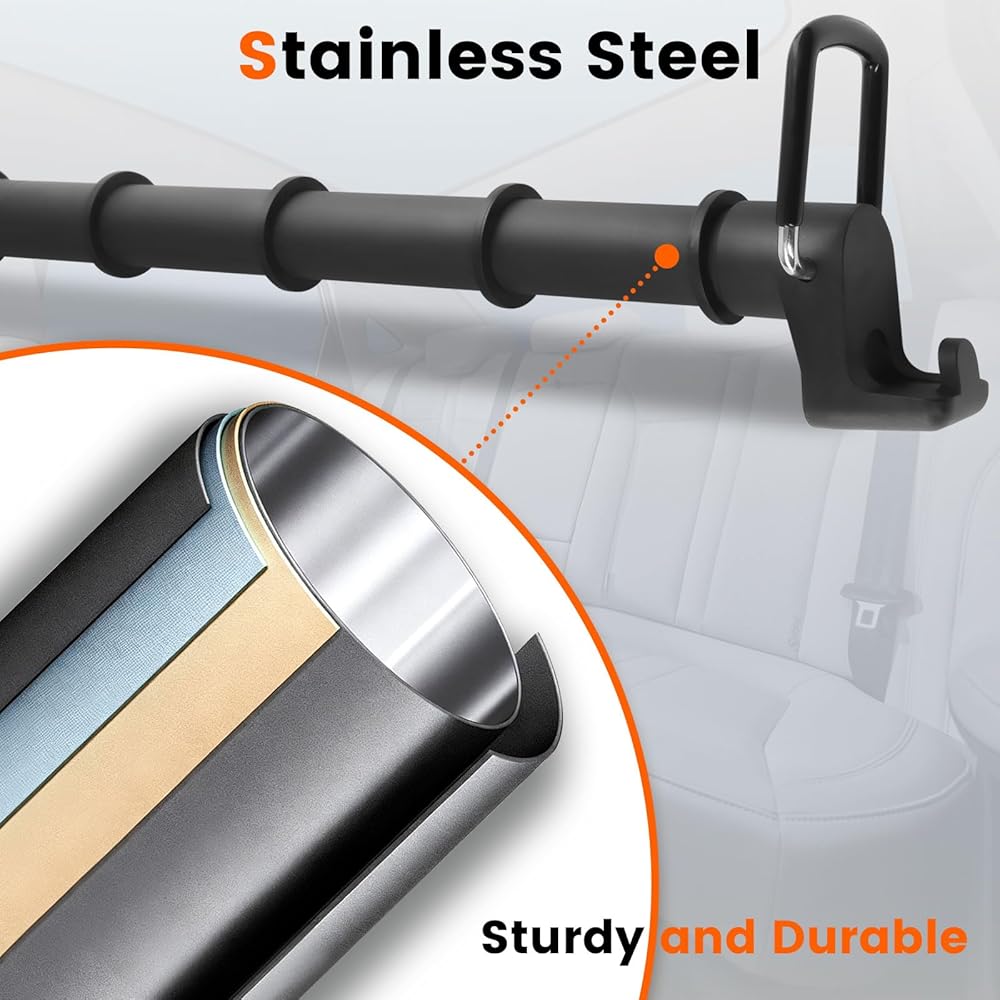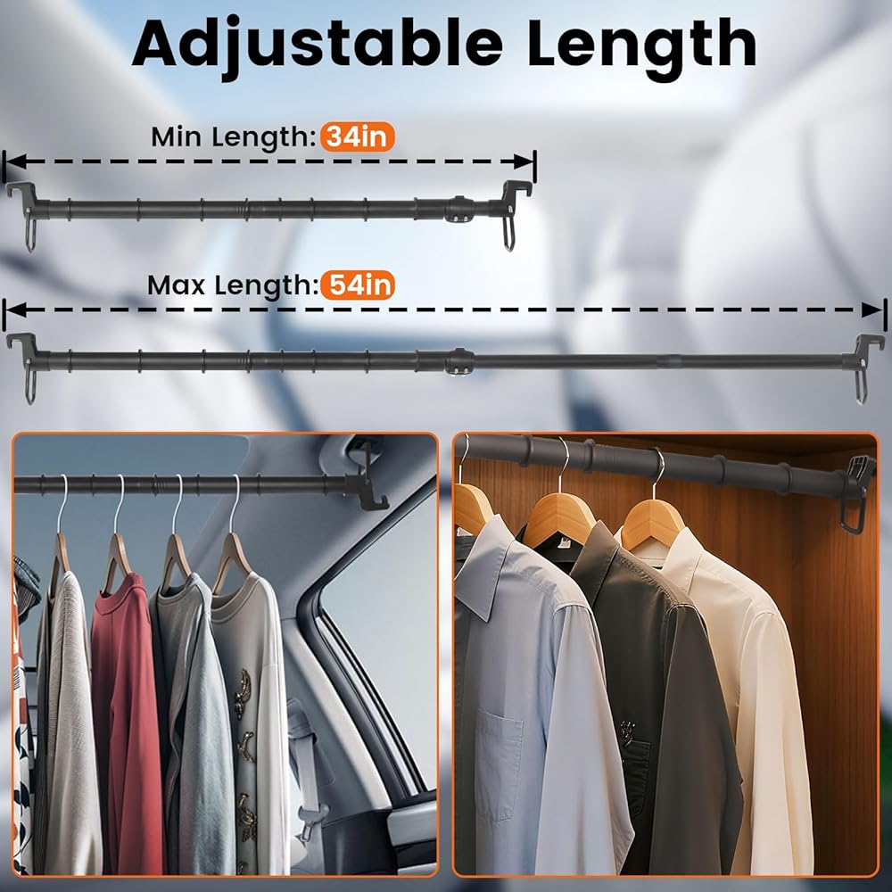 تصميم قابل للتعديل: يمكن تمديد قضبان الملابس هذه للسيارة من 86.36 سم إلى 137.16 سم، مما يوفر مساحة واسعة لتعليق الملابس ومناسب لمعظم موديلات السيارات.