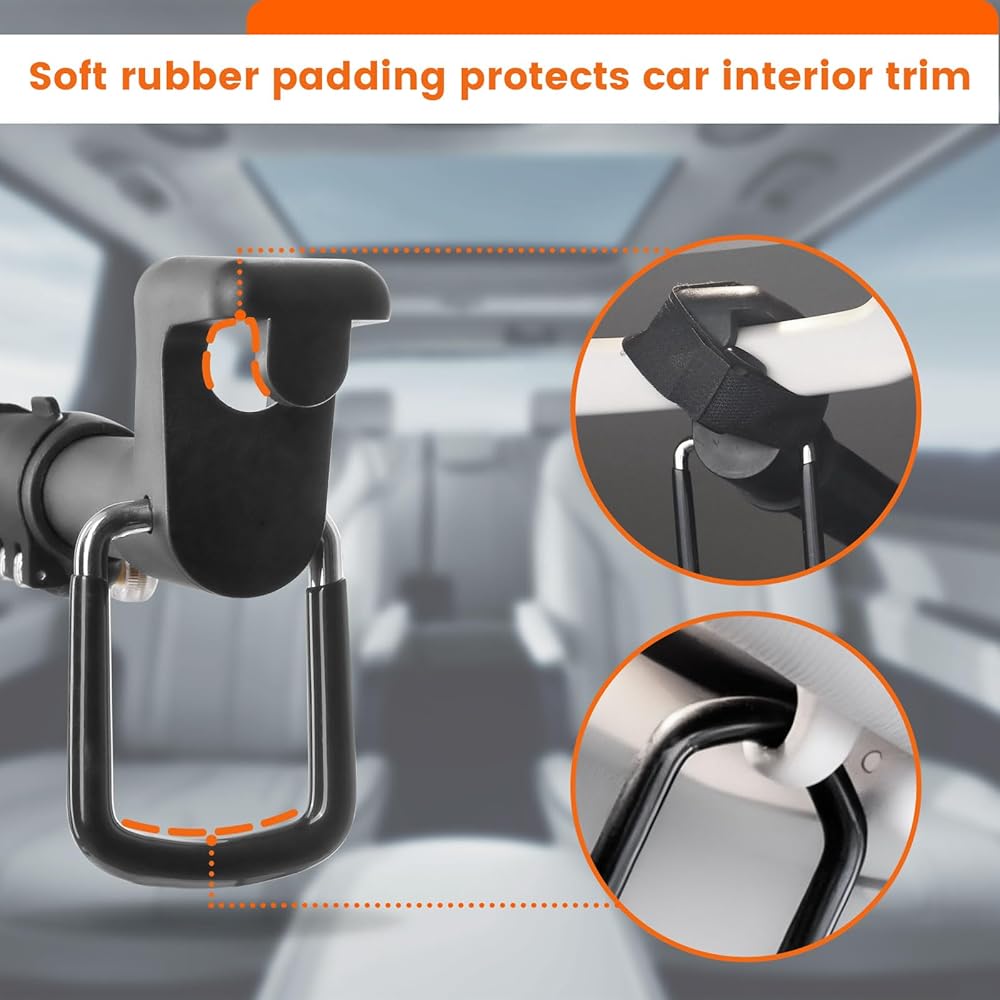 تصميم مطاطي مضاد للانزلاق: لقد صممنا أنظمة مطاطية ناعمة مضادة للانزلاق خصيصًا على طرفي شريط شماعات ملابس السيارة لحماية مقابض سيارتك مع ضمان الثبات أثناء الاستخدام.