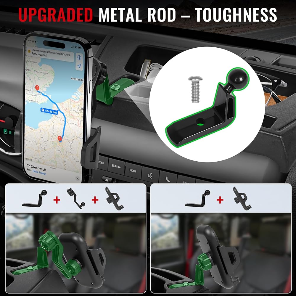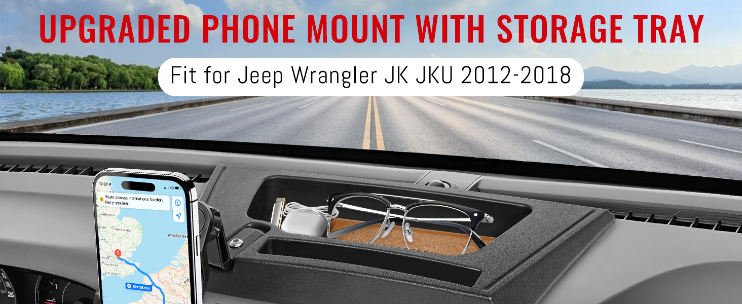 توافق مثالي: حامل هاتف مطور مع صينية تخزين، مخصص لـ 2018 2017 2016 2015 2014 2013 2012 Jeep Wrangler JK JKU 2 Door & 4 Door Unlimited (الرياضة، الصحراء، الحرية والروبيكون). ملاءمة مثالية، ترقية داخلية مخصصة لسيارتك رانغلر