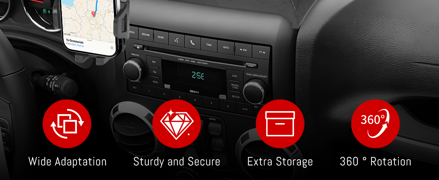 حجم أكبر متوافق وسهل التركيب: يمكن للحامل حمل الهواتف (4 بوصة - 7 بوصة). تركيب سهل ومريح: قم بتجميع القضيب والقوس ← ضع اللاصق على الوجهين للدرج ← قم بإزالة لوحة القيادة ← قم بتثبيت صينية حامل الهاتف ← أضف وسادات مطاطية واضبط حامل الهاتف. نصيحة: إذا كانت لديك أي أسئلة حول حامل الهاتف، فيرجى الاتصال بنا لحلها