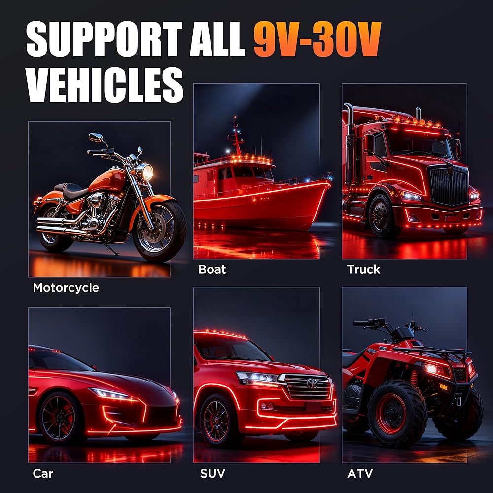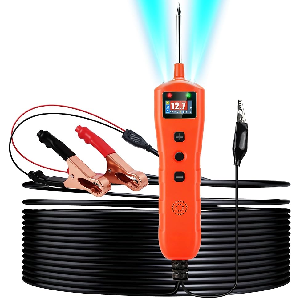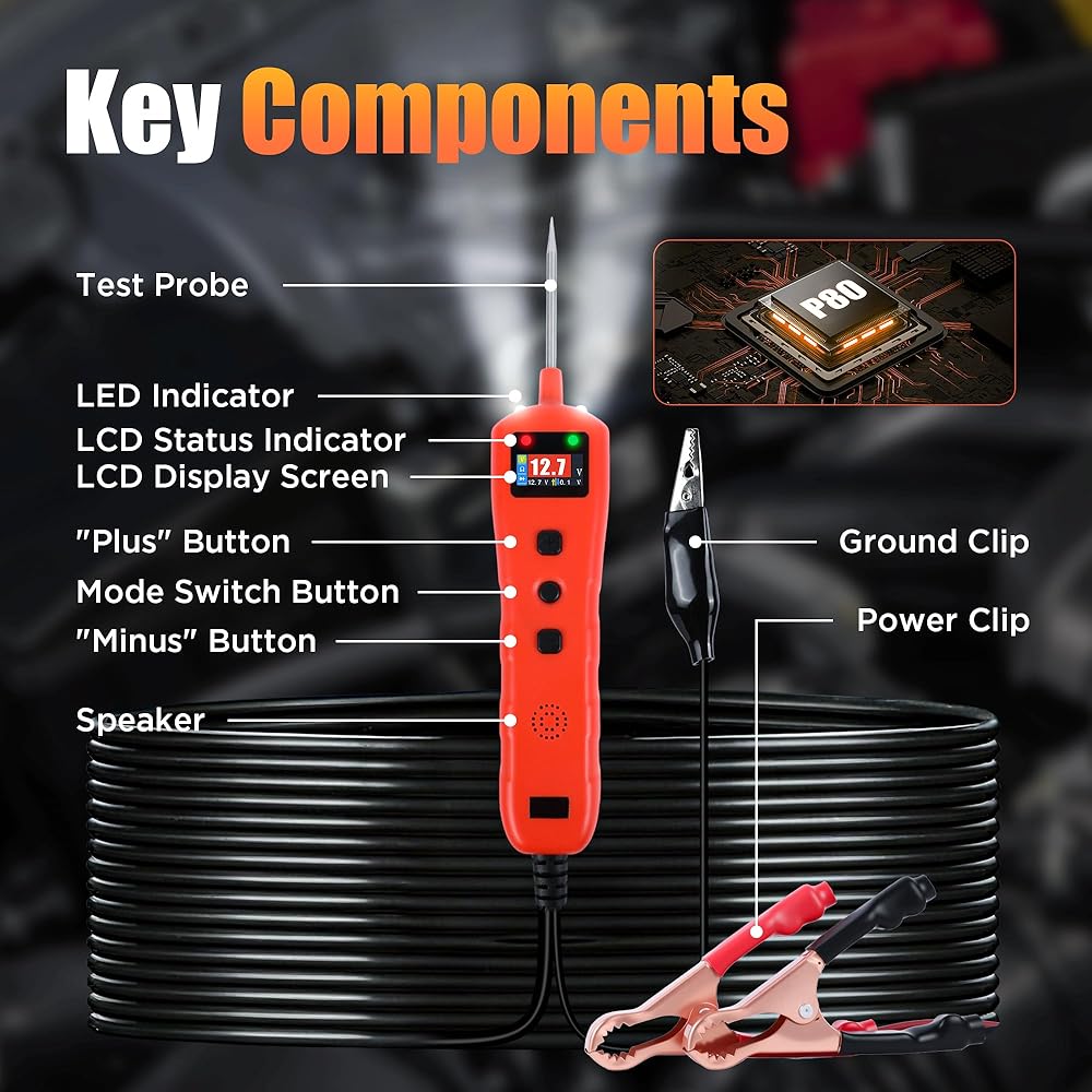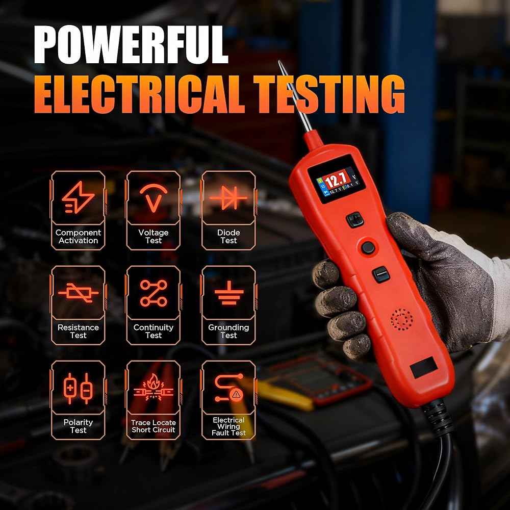 4. 【التوافق العالمي والتشغيل البديهي】 جهاز اختبار المسبار الخاص بنا متوافق مع المركبات 9-30 فولت بما في ذلك السيارات والشاحنات والدراجات النارية وسيارات الدفع الرباعي والحفارات والسفن البحرية. يتميز جهاز اختبار مسبار دائرة الطاقة هذا بمؤشرات LED حمراء/خضراء للحصول على تعليقات فورية، وشاشة TFT ساطعة للحصول على نتائج واضحة، ومصباح كشاف مدمج للأماكن المظلمة - جميعها مصممة لتشخيص أسرع وأسهل وأكثر بديهية.