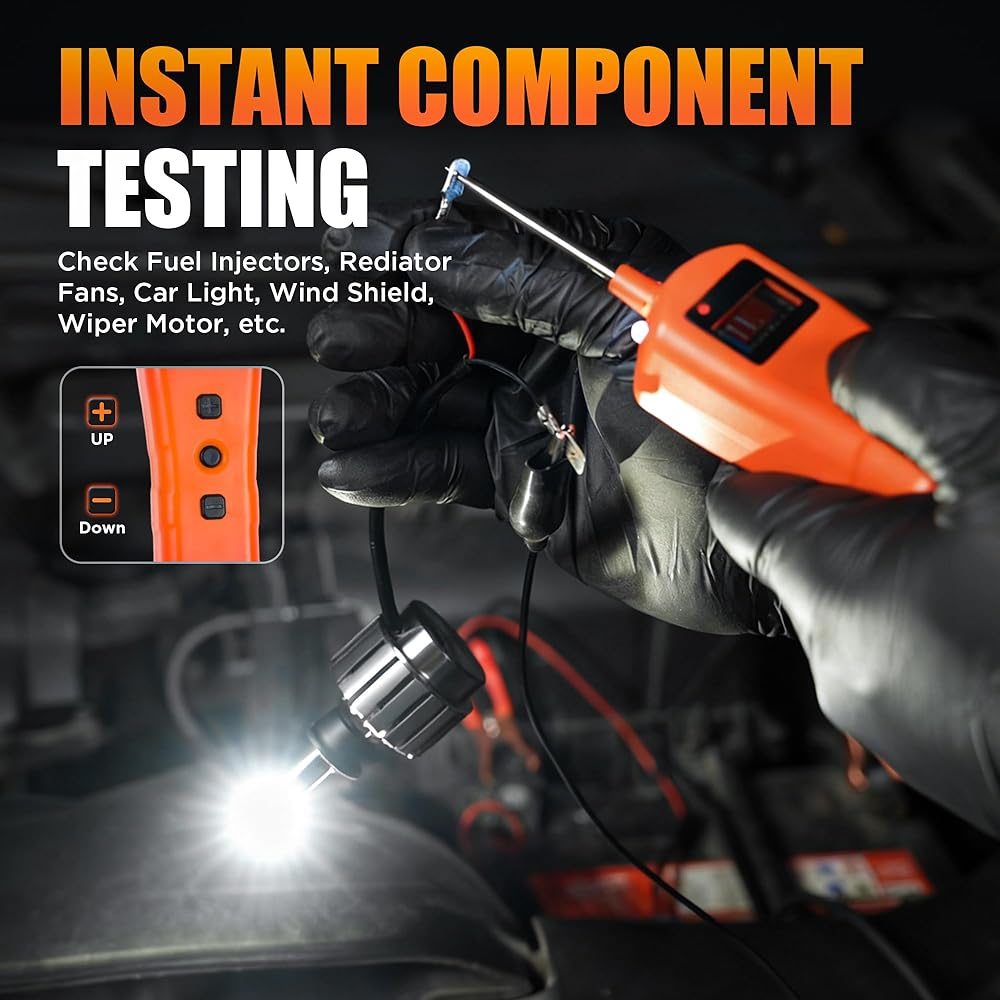 3. وظيفة تنشيط المكونات: عند توصيله بالطاقة والضغط على الزر "+"، يوفر جهاز اختبار مسبار دائرة الطاقة الخاص بنا إشارة آمنة منخفضة الجهد لتنشيط المكونات مثل الأضواء والمراوح والمساحات وحاقن الوقود. تسمح هذه الوظيفة بالتحقق السريع من وظيفة الجزء قبل الاستبدال، مما يوفر طريقة ذكية وفعالة لتوفير الوقت ومنع الإصلاحات غير الضرورية.