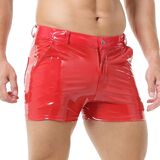 【سراويل جلدية مسطحة أمامية 】: هذا السروال القصير الرجالي من جلد البولي يوريثان الأسود مصنوع من البوليستر، نسيج ناعم، مريح في الارتداء. هذا البنطلون القصير يناسب النادي والحفلات والارتداء اليومي.